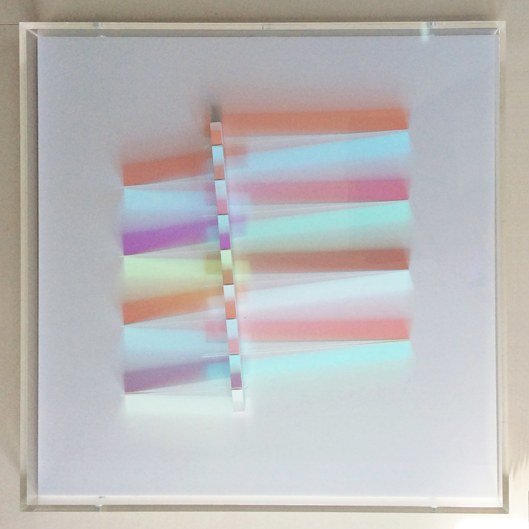 Parallel Shift IV is a glass and wood construction presented in an acrylic box frame.
