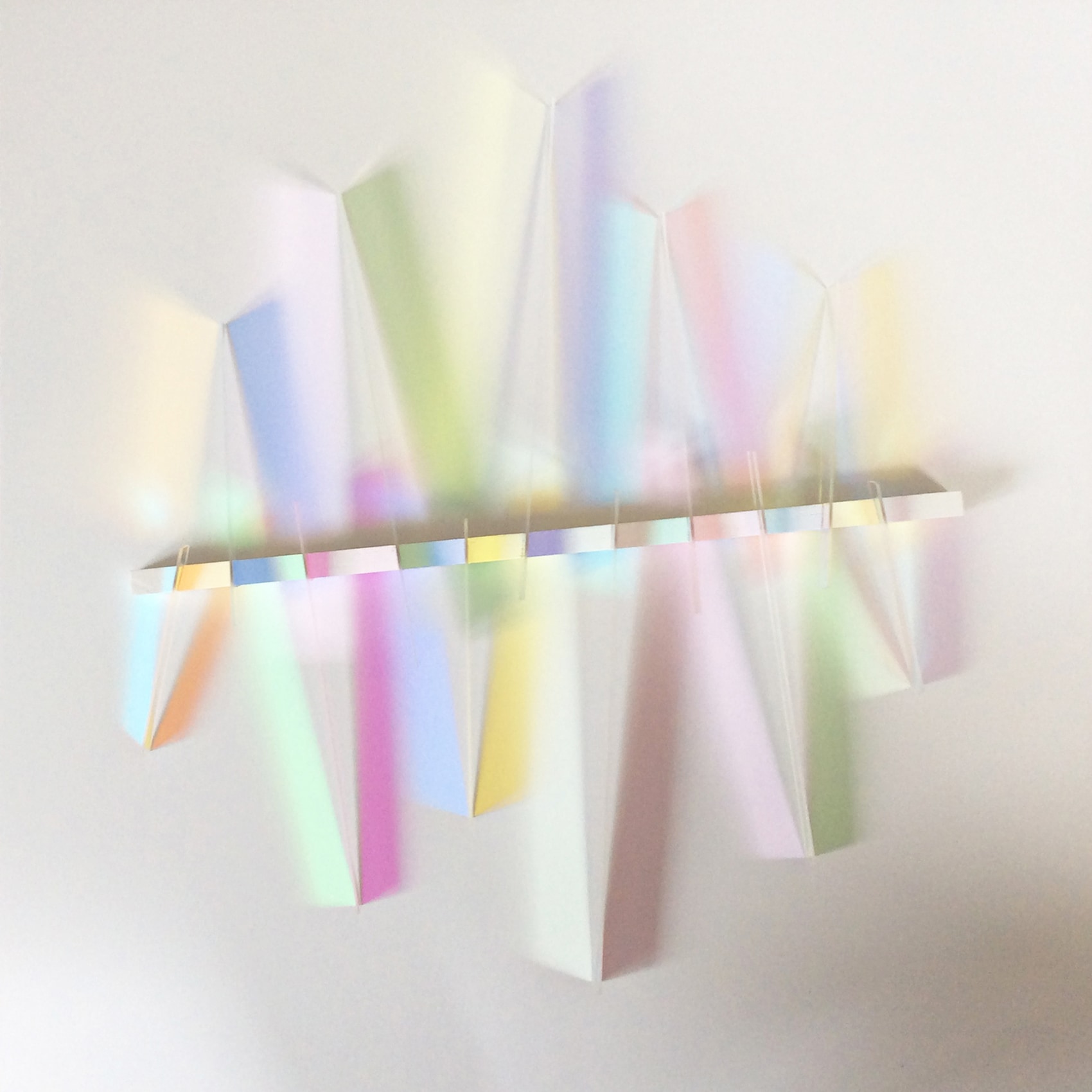 Intensity of colour depends on the angle of light passing through the glass. This sequence of images illustrates how the artwork can change from having no colour and an abstract linear composition to showing it's full colour projection.