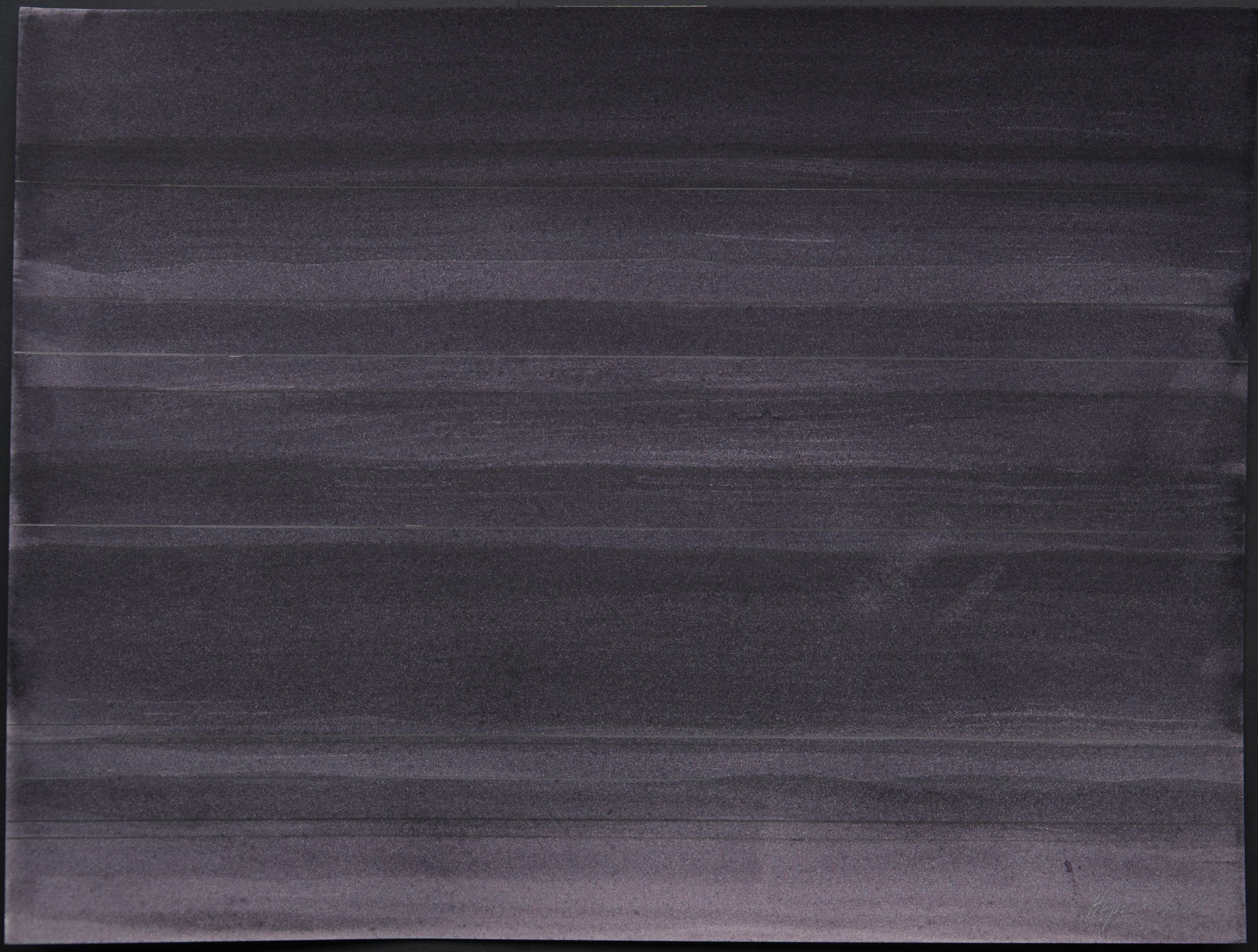 This portfolio of ink paintings is made up of 16 works in total. They are made with oak gall ink, hand made after a renaissance formula, a mixture of oak gall acid, iron sulfate, gum arabic, and white wine. Each painting is made up of 12 horizontal stripes, painted across the surface with a soft brush. The formula for the width of the stripes as well as placement is based the digits of hexadecimal pi.