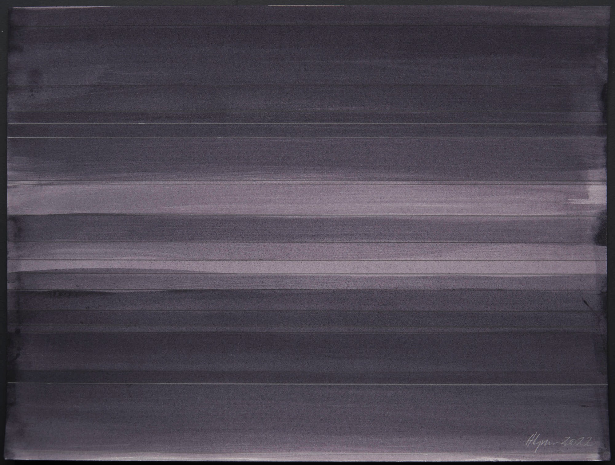 This portfolio of ink paintings is made up of 16 works in total. They are made with oak gall ink, hand made after a renaissance formula, a mixture of oak gall acid, iron sulfate, gum arabic, and white wine. Each painting is made up of 12 horizontal stripes, painted across the surface with a soft brush. The formula for the width of the stripes as well as placement is based the digits of hexadecimal pi.