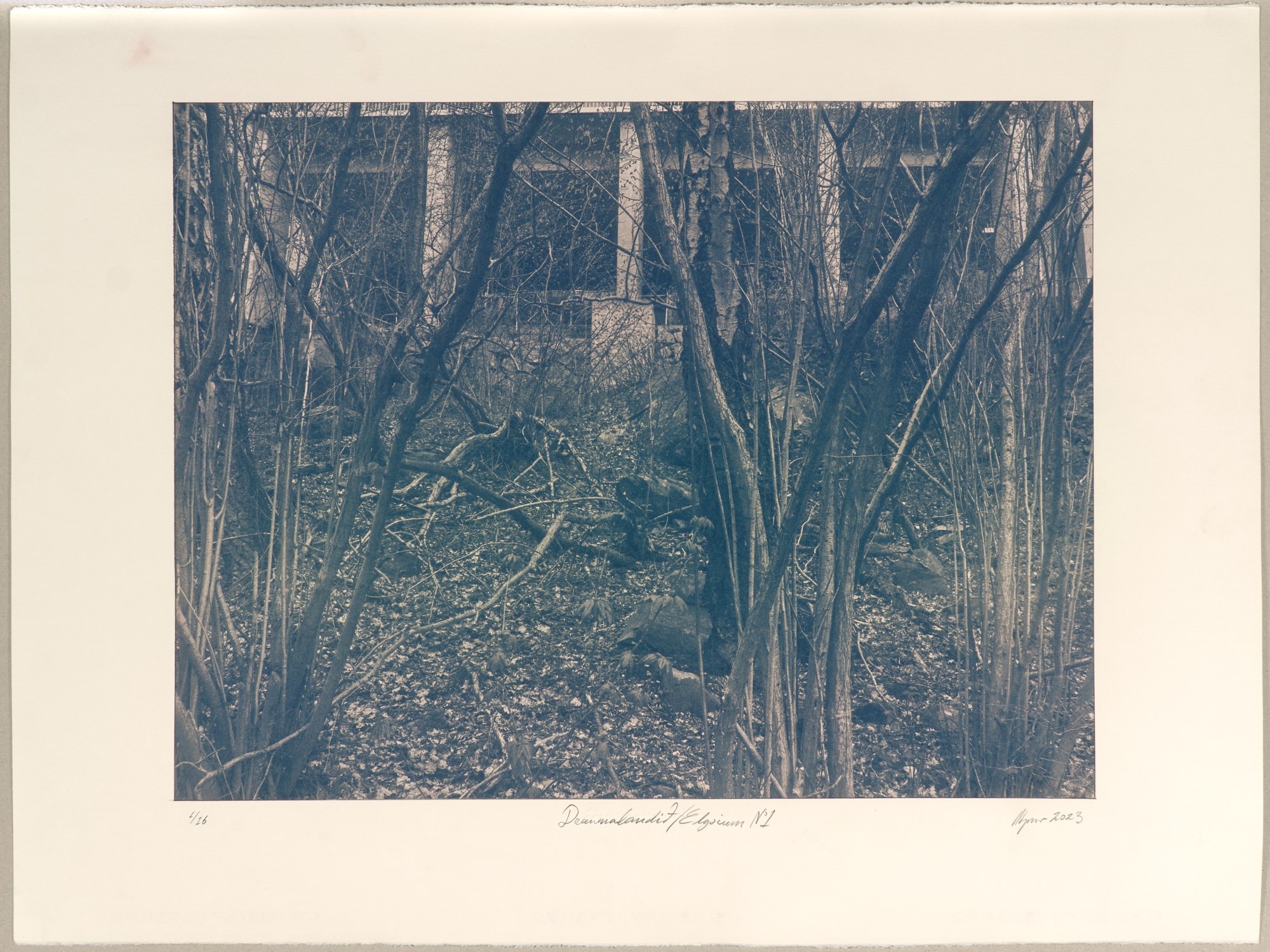 - Signature: Myndin er merkt undir myndfleti með númeri, heiti og undirskrift. Signed beneath the image area. with version number, title, and signature.