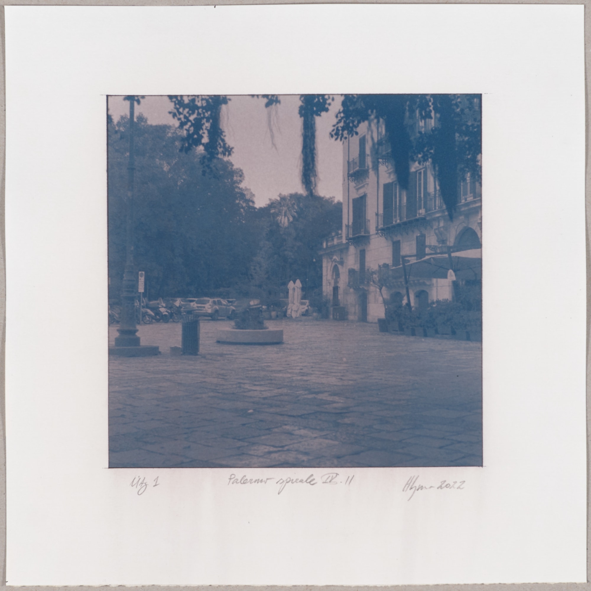 Cyanotype, Tannic Acid toned on Arches Natural White Watercolor Paper, Hot Press, 300gsm, 20 x 20 cm on 31 x 31 cm sheet.