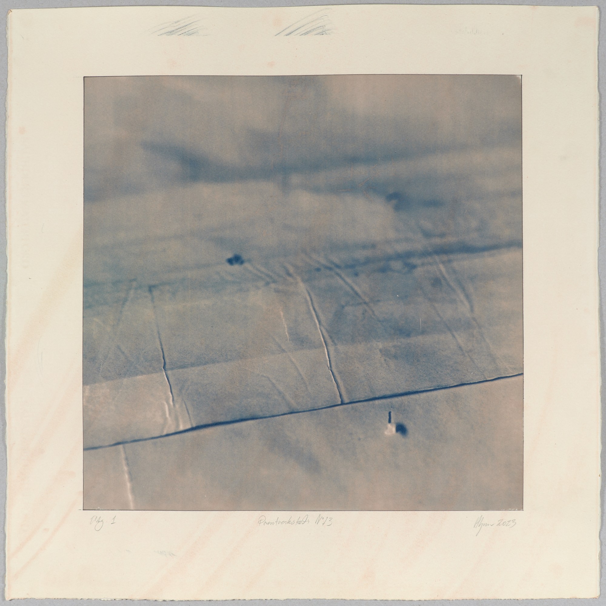 Bláprent, kýanótýpa, tónað með lausn úr rauðfuruberki / Cyanotype, toned with red pine bark tannin extract.