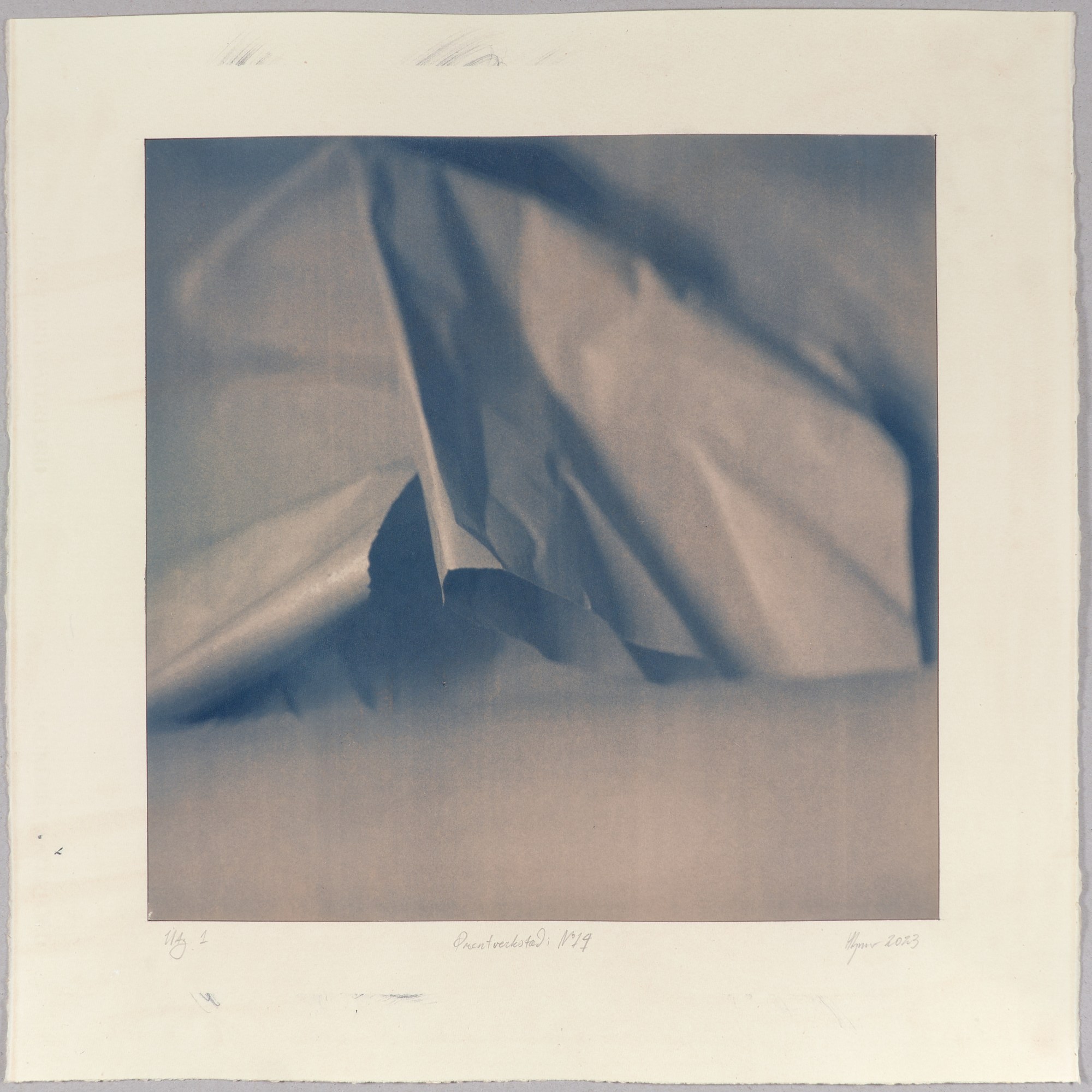 Bláprent, kýanótýpa, tónað með lausn úr rauðfuruberki / Cyanotype, toned with red pine bark tannin extract.