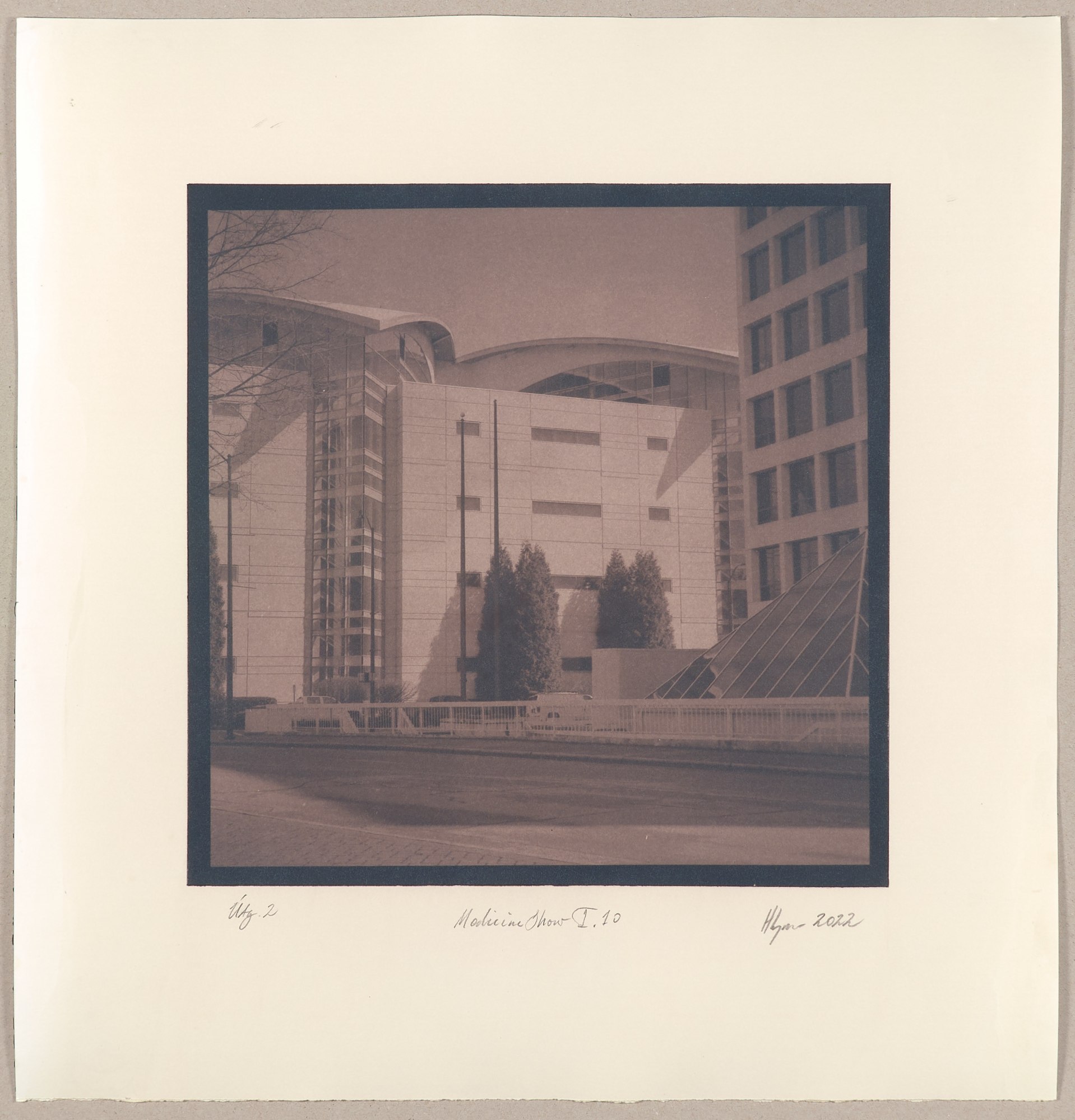 Technique: Cyanotype, tannic acid toned on Arches Natural White Watercolor Paper, Hot Press, 356 gsm, 31x31 cm on 48x46 cm sheet.