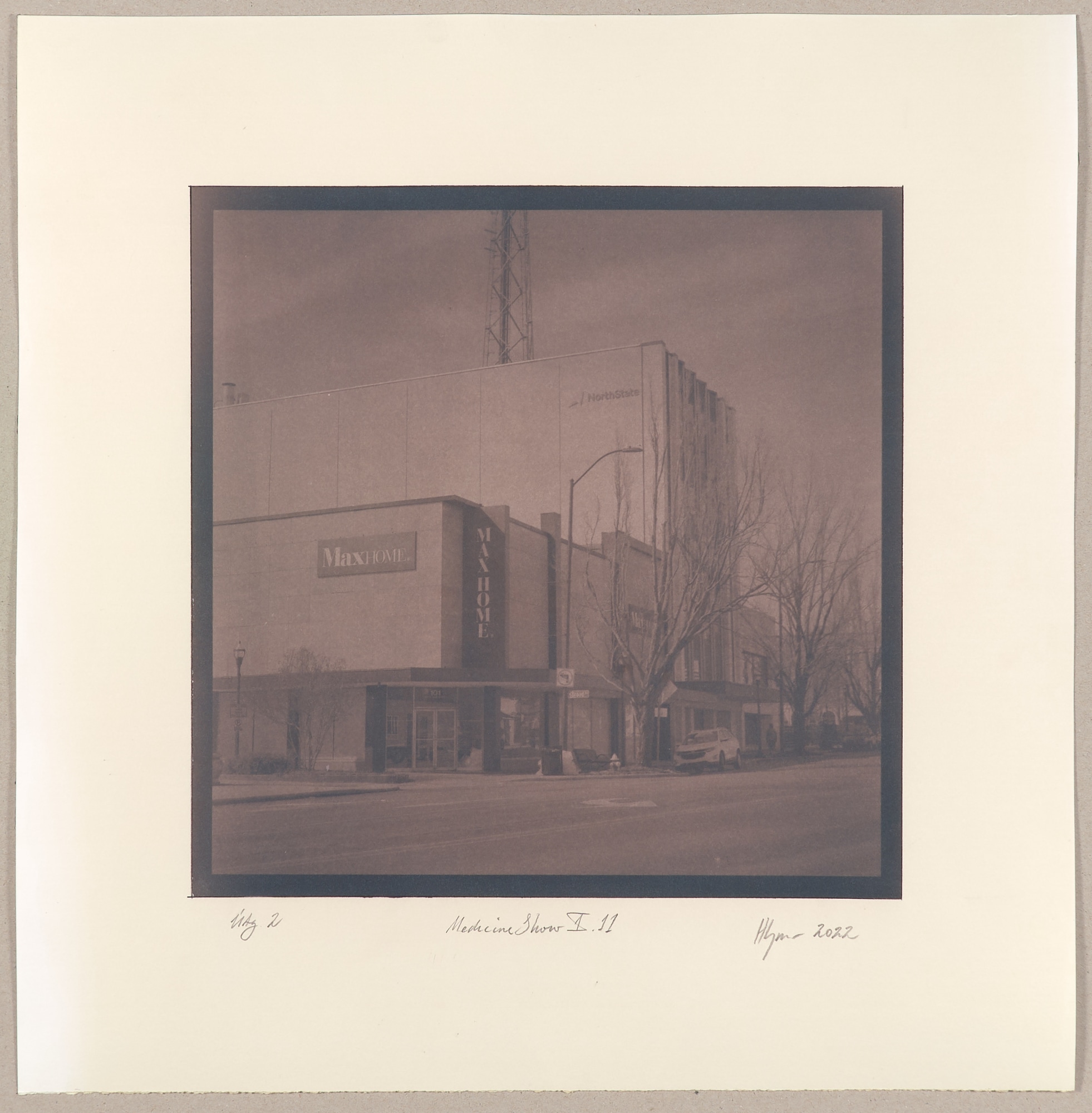 Technique: Cyanotype, tannic acid toned on Arches Natural White Watercolor Paper, Hot Press, 356 gsm, 31x31 cm on 47x45 cm sheet.