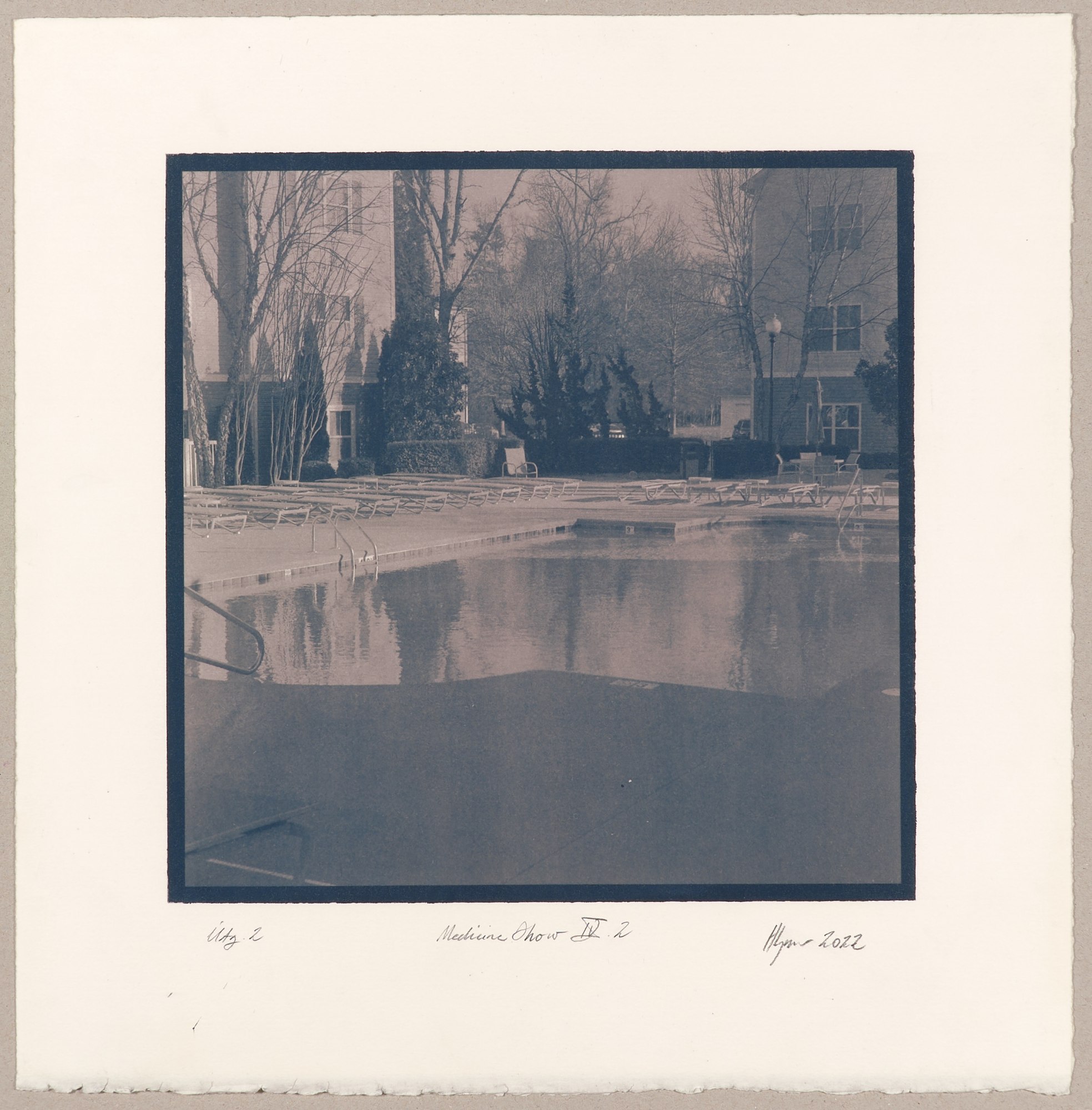 Technique: Cyanotype, tannic acid toned on Arches Natural White Watercolor Paper, Hot Press, 356 gsm, 31x31 cm on 47x45 cm sheet.