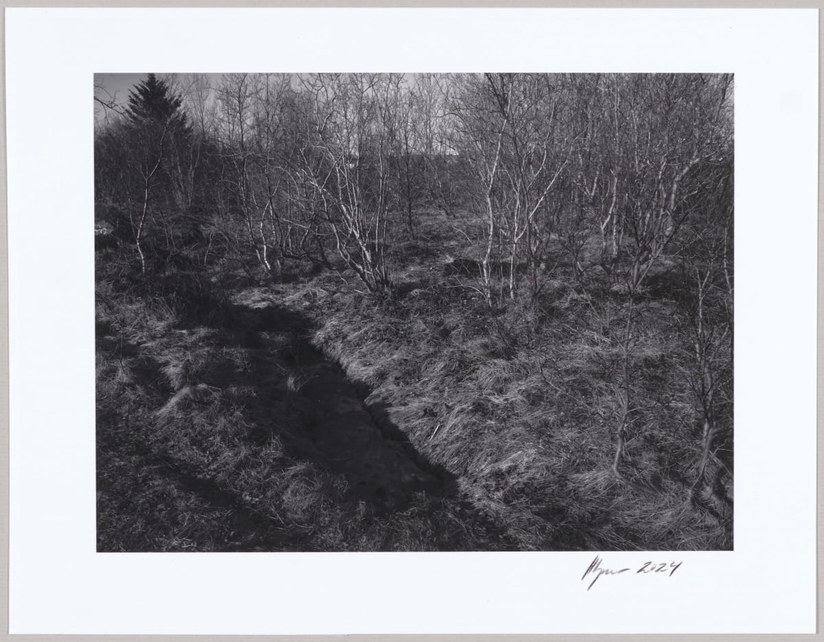 This series of twelve black-and-white fine art photographs is a sequence of images shot in Elliðarárdalur in Reykjavík. The subject matter traces the dykes for rainwater by the path, with an overview across the forest and the river to the neighbourhood on the other side.