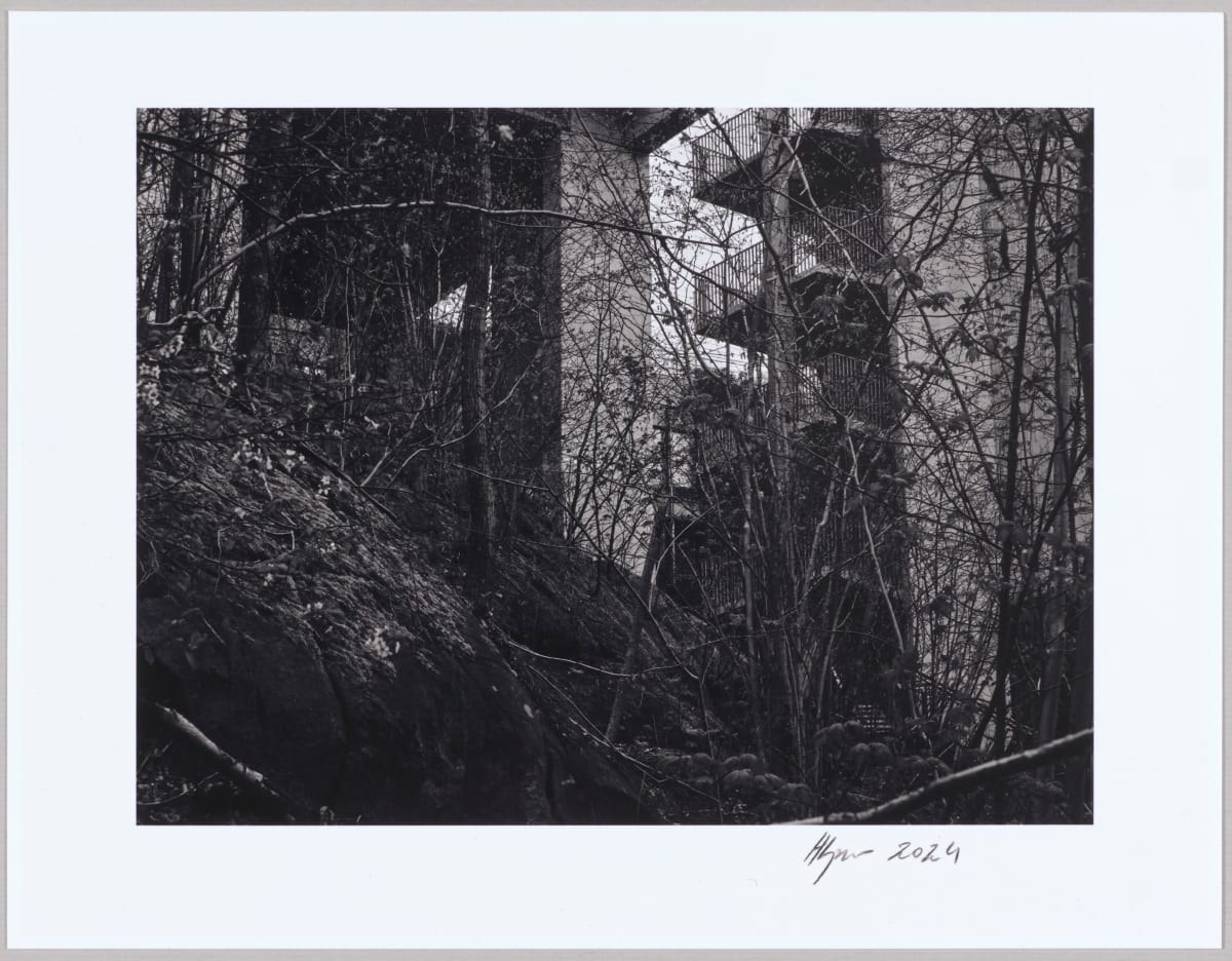 This series of twenty black-and-white prints is a sequence of images shot in Mossen, a parkland area ridged by highrises on one side. These images are processed to create a gothic, almost primaveral feeling that I feel is apt for our precarious times. The title 'Erebus', meaning a personification of darkness in Greek mythology, a place of darkness in the underworld on the way to Hades, attempts to grasp that feeling. Shot on a Fujifilm GFX100S with a GF30 mm f/3.5 lens at 1/15s, f/11, this image is printed on an Epson SC P800 with Piezography Pro ink. Its image area is 16 x 20 cm on 22.5 x 25.4 cm Hahnemühle Baryta FB 350 g paper. This is printed in an edition of 24.