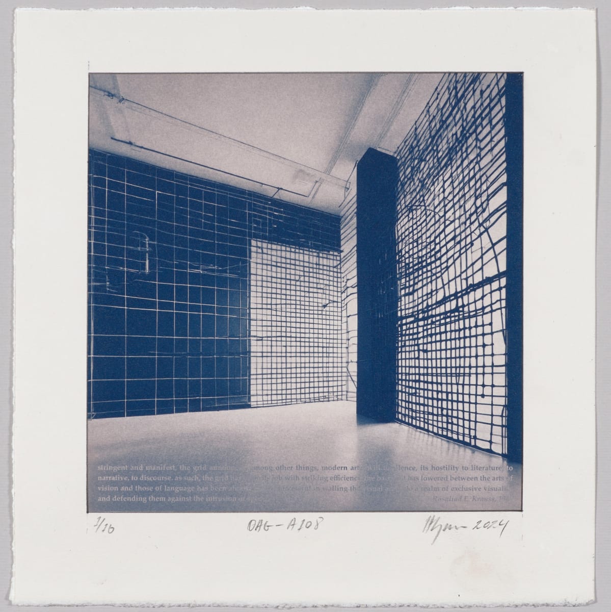 This is part of a series of toned cyanotypes based on images generated with a prompt referencing Rosalind E. Krauss’s Originality of the Avant-Garde, which illustrates critical art theory in a sense.