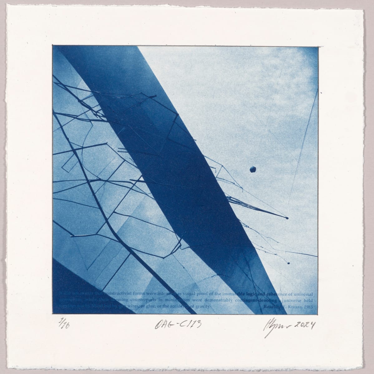 This is part of a series of toned cyanotypes based on images generated with a prompt referencing Rosalind E. Krauss’s Originality of the Avant-Garde, which illustrates critical art theory in a sense. Cyanotype, 21 x 21 cm on 28 x 18 cm sheet Saunders Waterford 300g HP natural paper, limited edition of 6. Stable diffusion generated the original image, further post-produced in On1 Resize AI, Affinity Design, and Capture One. PiezoDN produced the digital negative.
