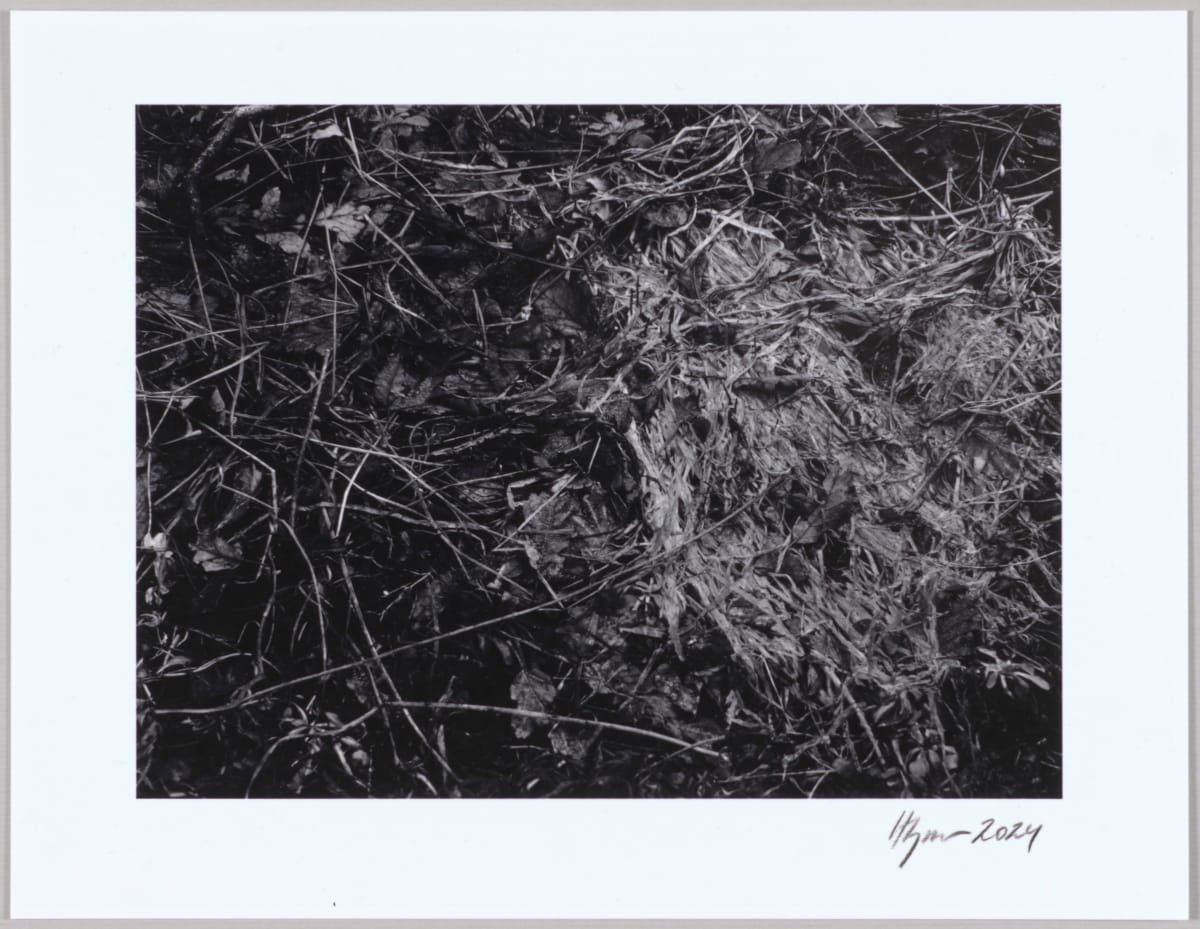 This is part of a series of nine black-and-white prints. These examine the garden’s textures and shades as winter’s final snow melts. The prints’ quality relies on using a carbon-based ink system for optimal quality.