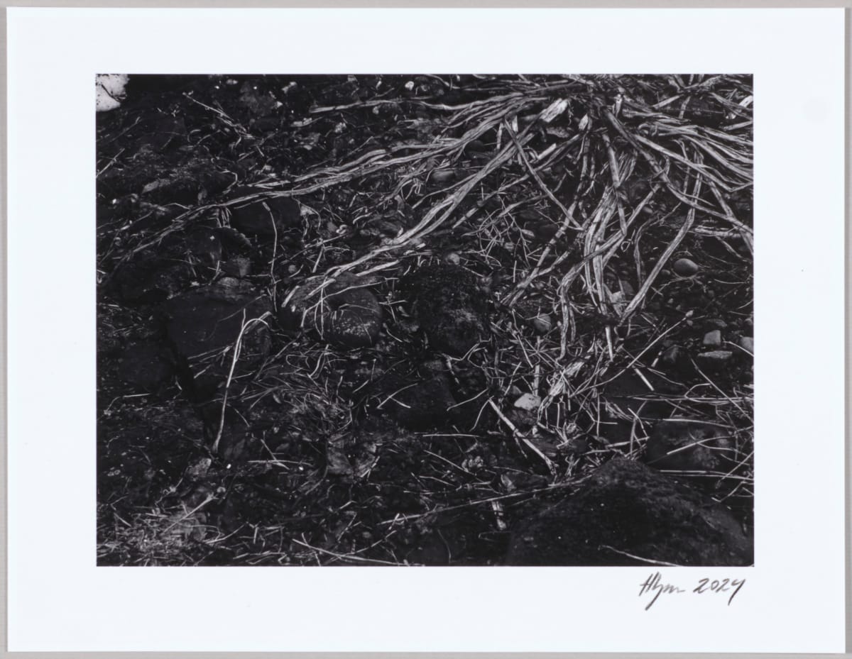 This is part of a series of nine black-and-white prints. These examine the garden’s textures and shades as winter’s final snow melts. The prints’ quality relies on using a carbon-based ink system for optimal quality.
