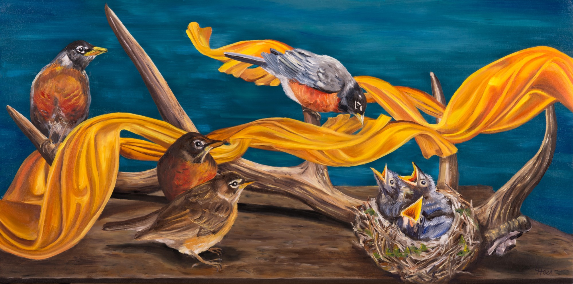 bird, nest, robins, antler, still life, allegory