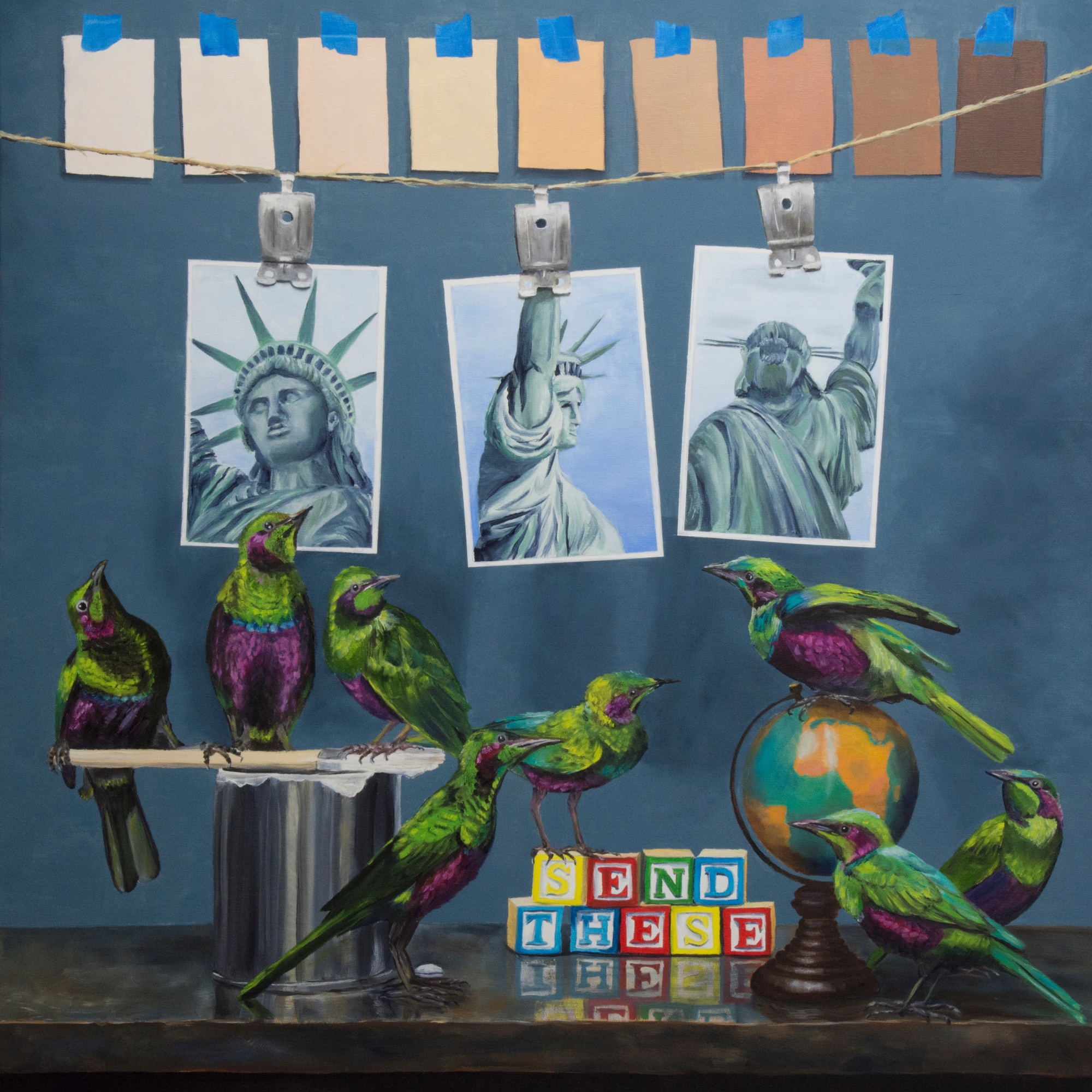 Still Life, Birds, Globe, Statue of Liberty, Race, Ethnicity, Immigration, Social Justice, Politics, Border Wall, Family Separation, Refugee, Justice, Discrimination, Migration
