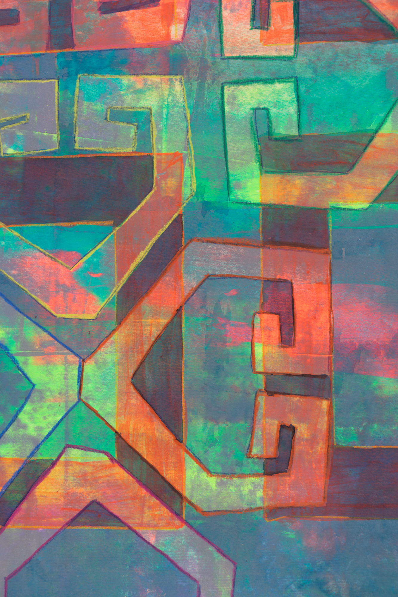 This series consists of works on paper that I made in October 2022 while I was in residence at Penland School of Craft in North Carolina. It was a beautiful time of year and of course I was inspired by the foliage and the leaf color transformation in particular. These drawings/paintings are layered color pencil and paint and there are many layers . These pieces are nature-landscape inspired and the colors create a contrast of vivid pigment with the frosted effect of the paint that is reminiscent of fog in early mornings with the vivid changing colors of the trees.
