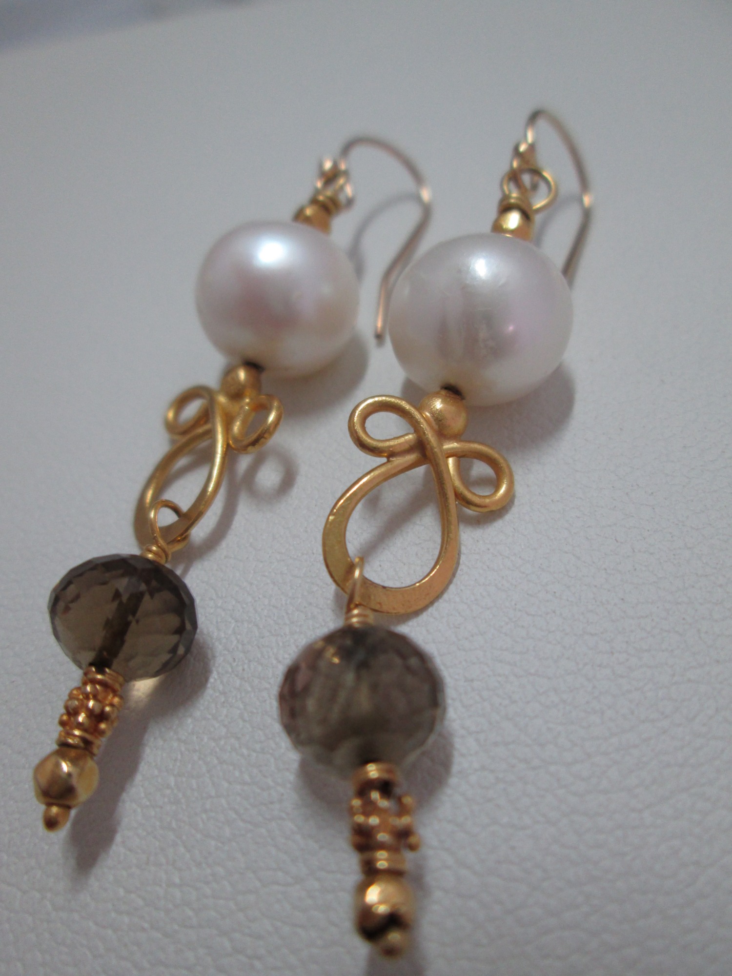 CFW Pearl and Quartz Earrings with Handmade 18 Ct Gold Loop Element
