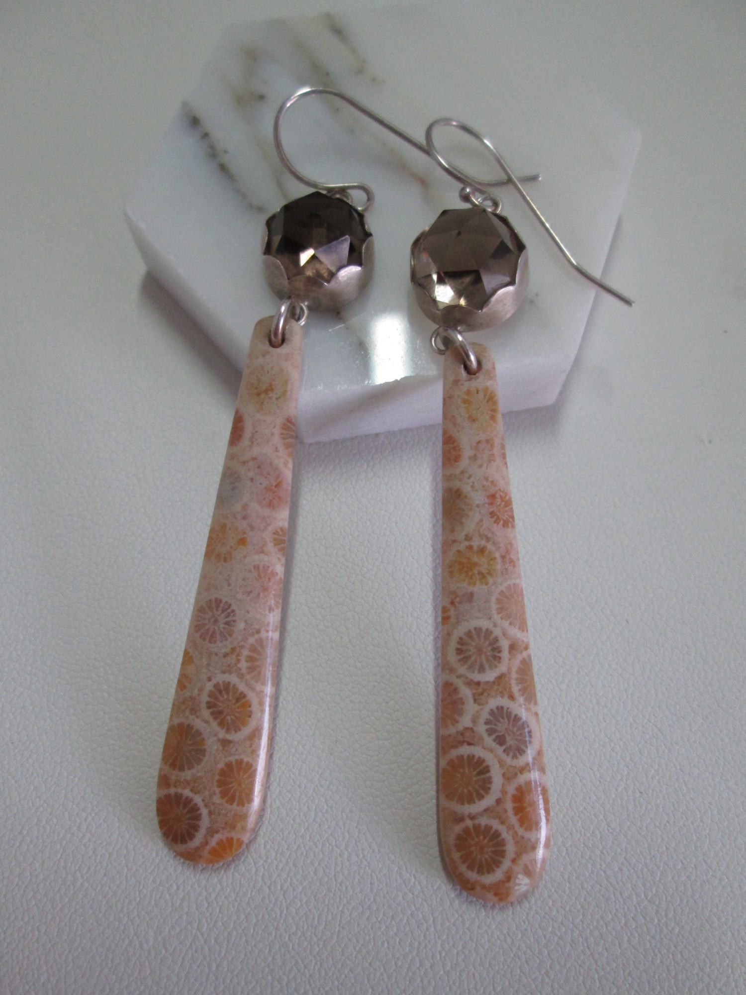 Fossilized Coral Earrings with Quartz
