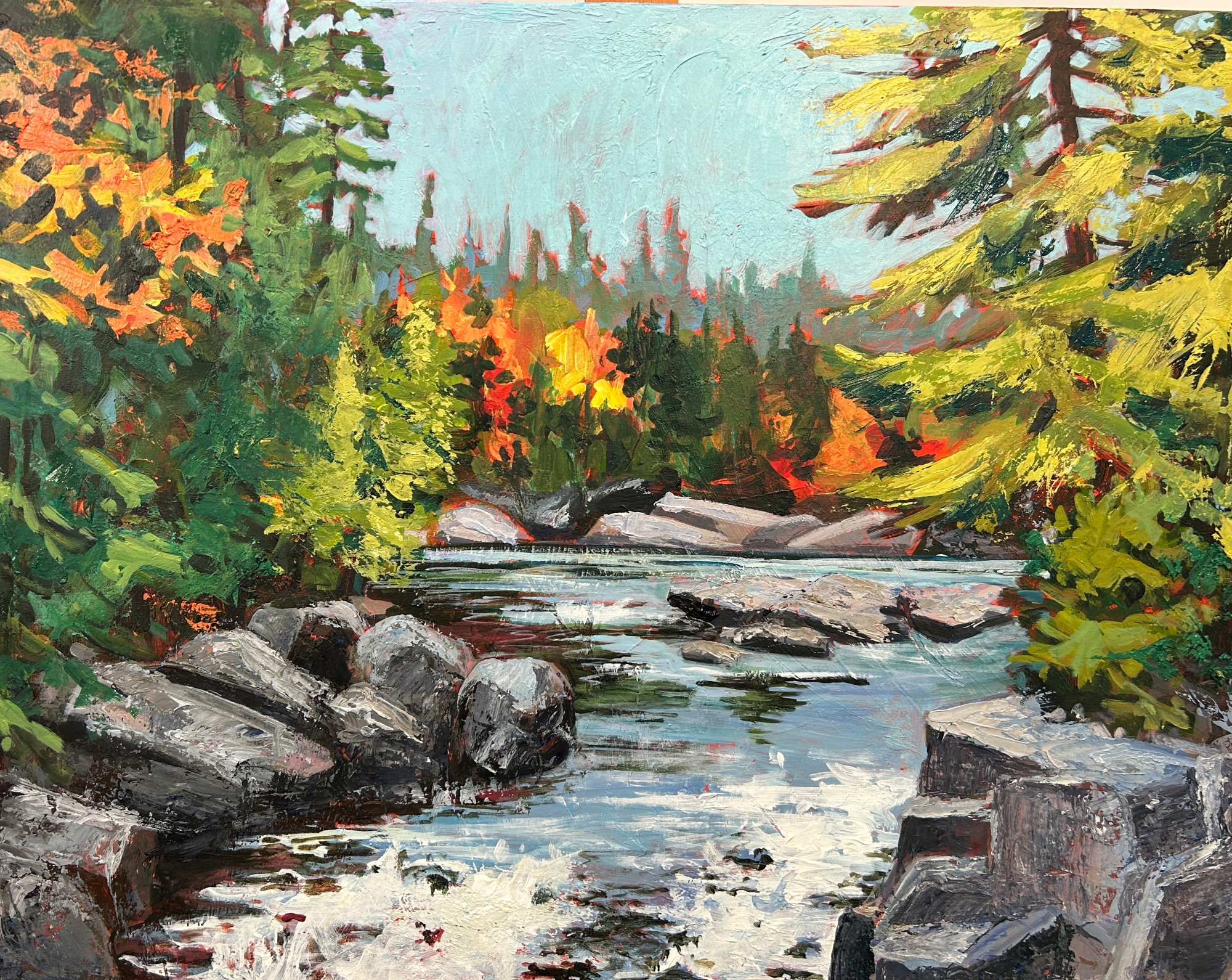 The first kiss of Autumn on the forest surrounding a gorgeous tumble of water splashing it's light and texture into the world.