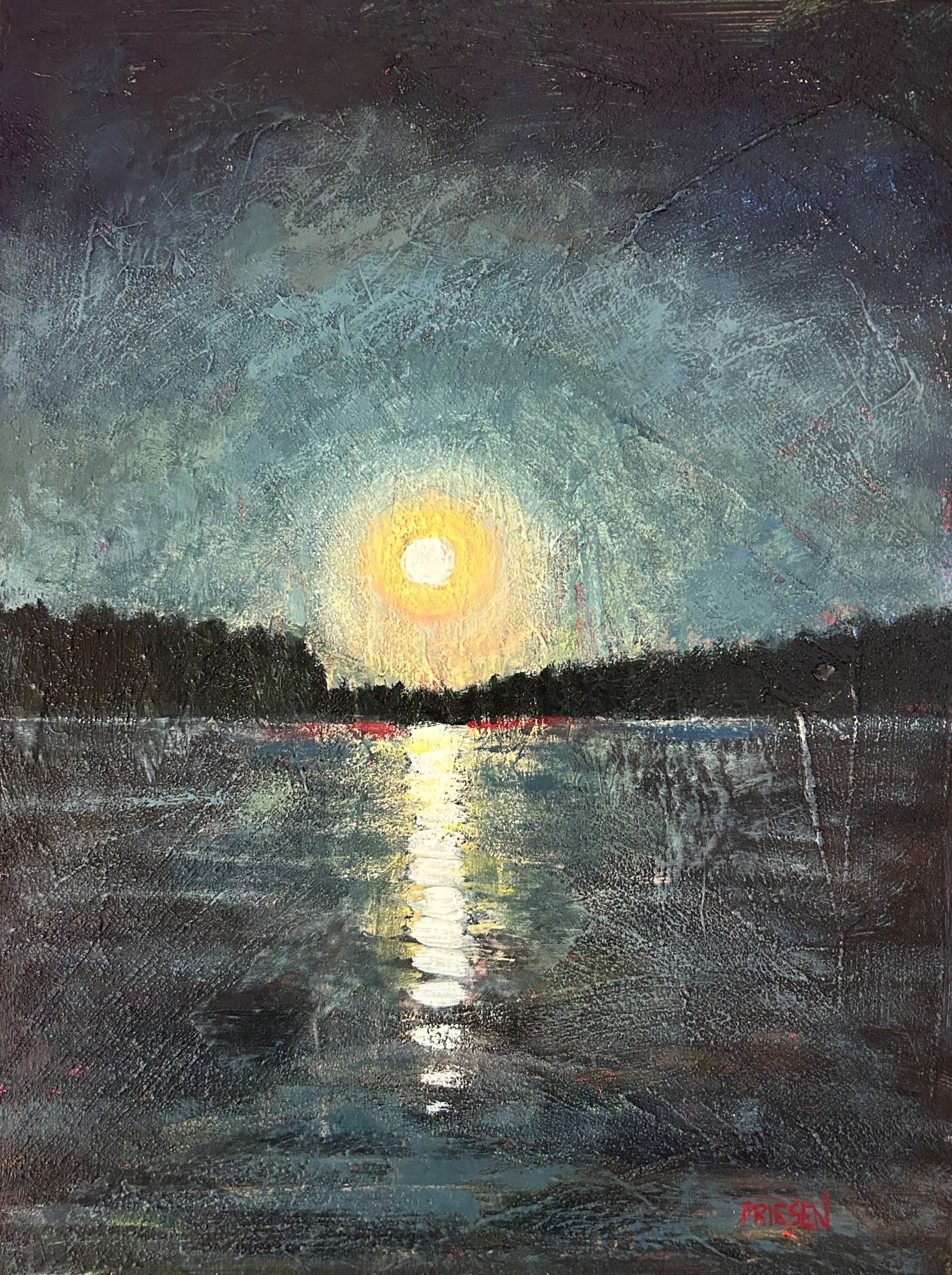 The harvest moon reflecting it's ladder of light across the water to the sky.