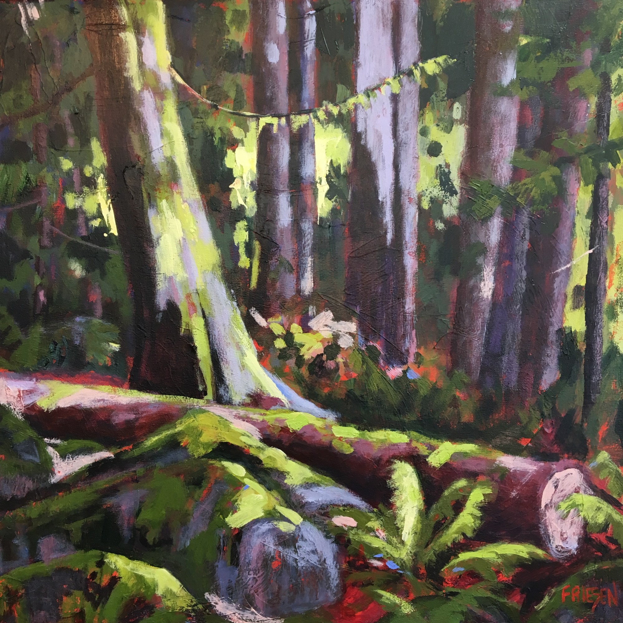 Into the depths of the lush and quiet forest of moss and shadows.