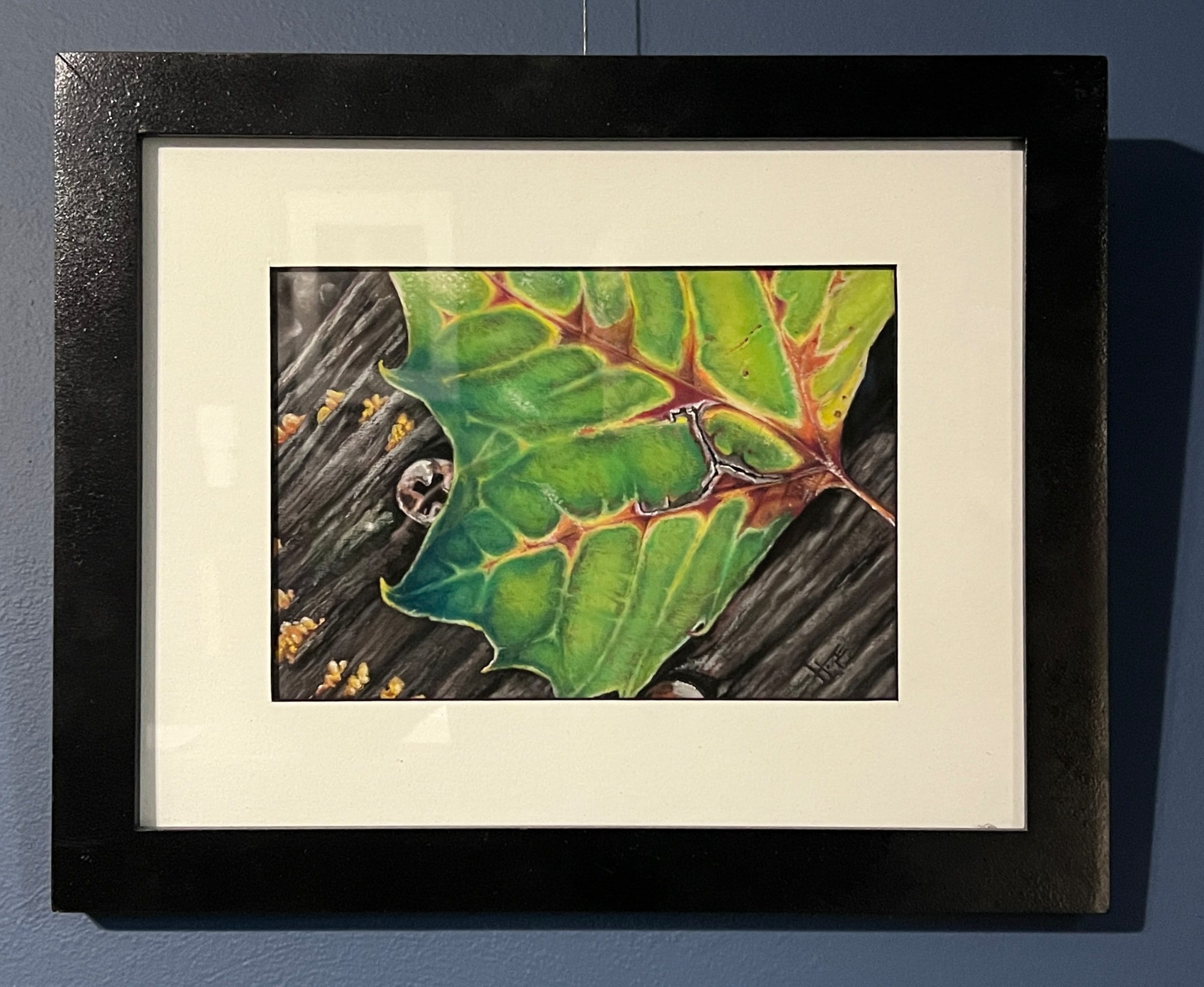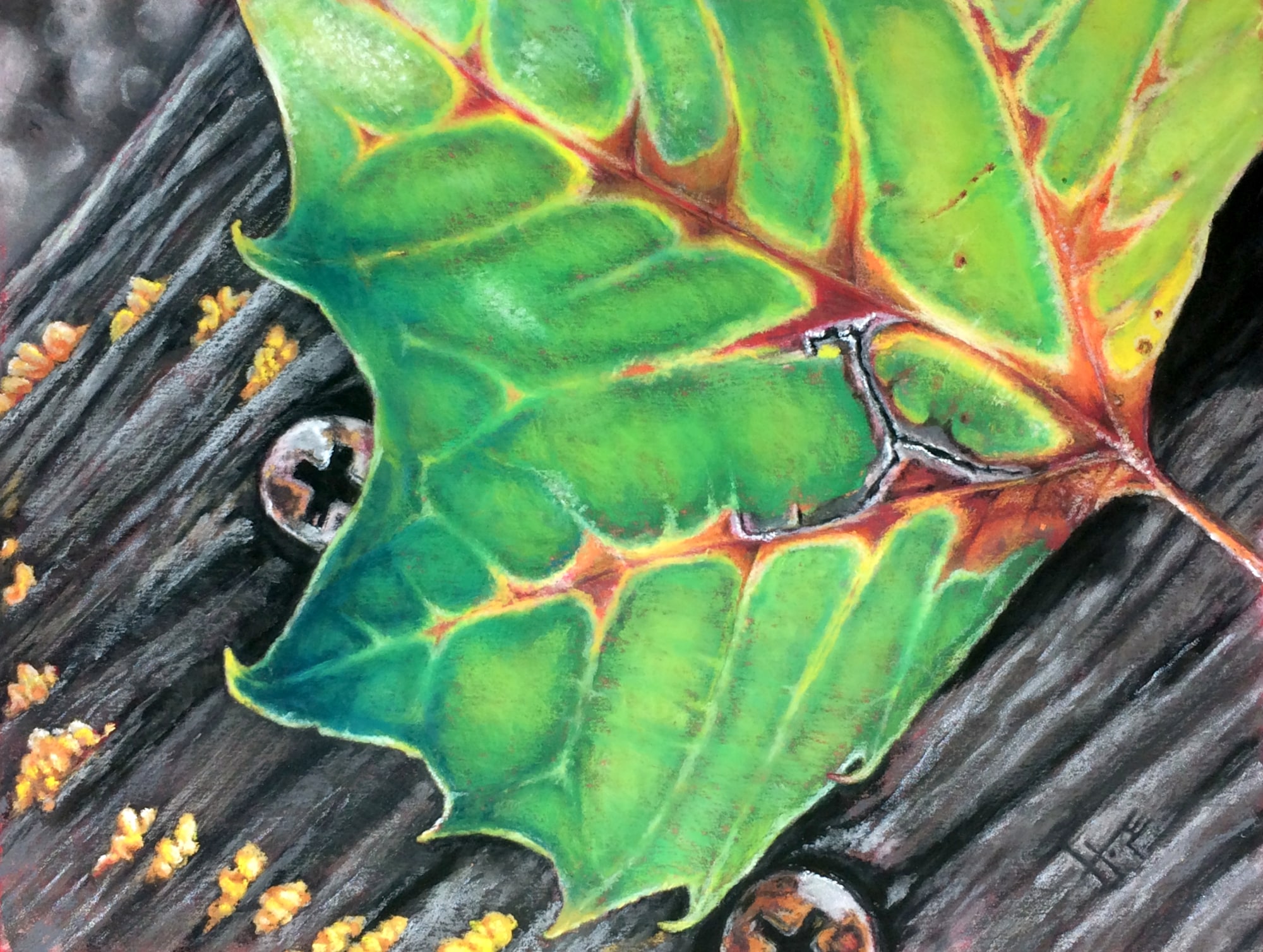 An autumn leaf on my deck railing keeping company with Witch's Butter fungus. Three different elements, reshaped wood, a manufactured metal screw and a leaf straight from the tree, all weathering together. All "marred" by nature or man but all have a sense of beauty to me.