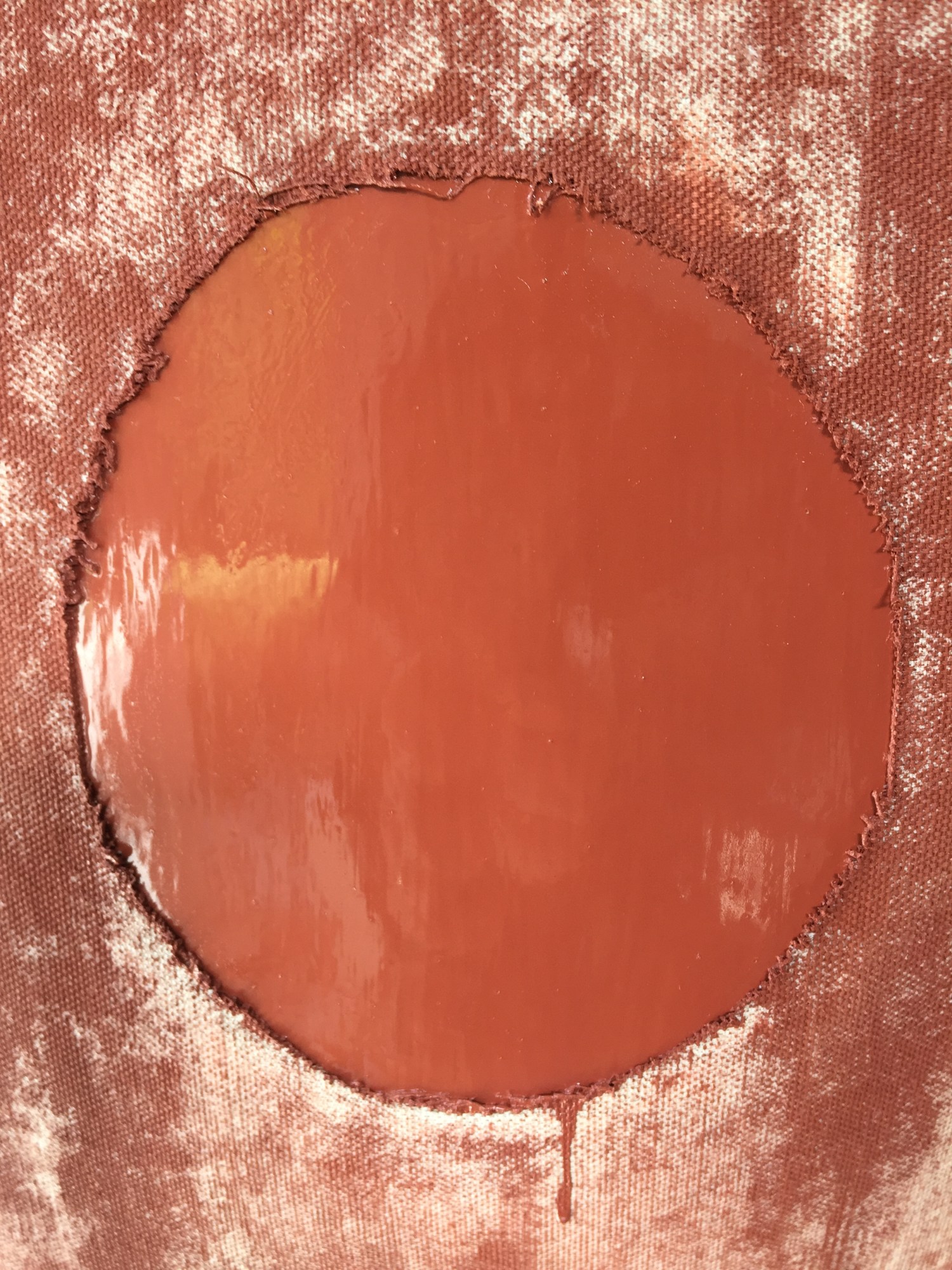 Bandage Painting (Red Oxide Half circle with circle and hole)