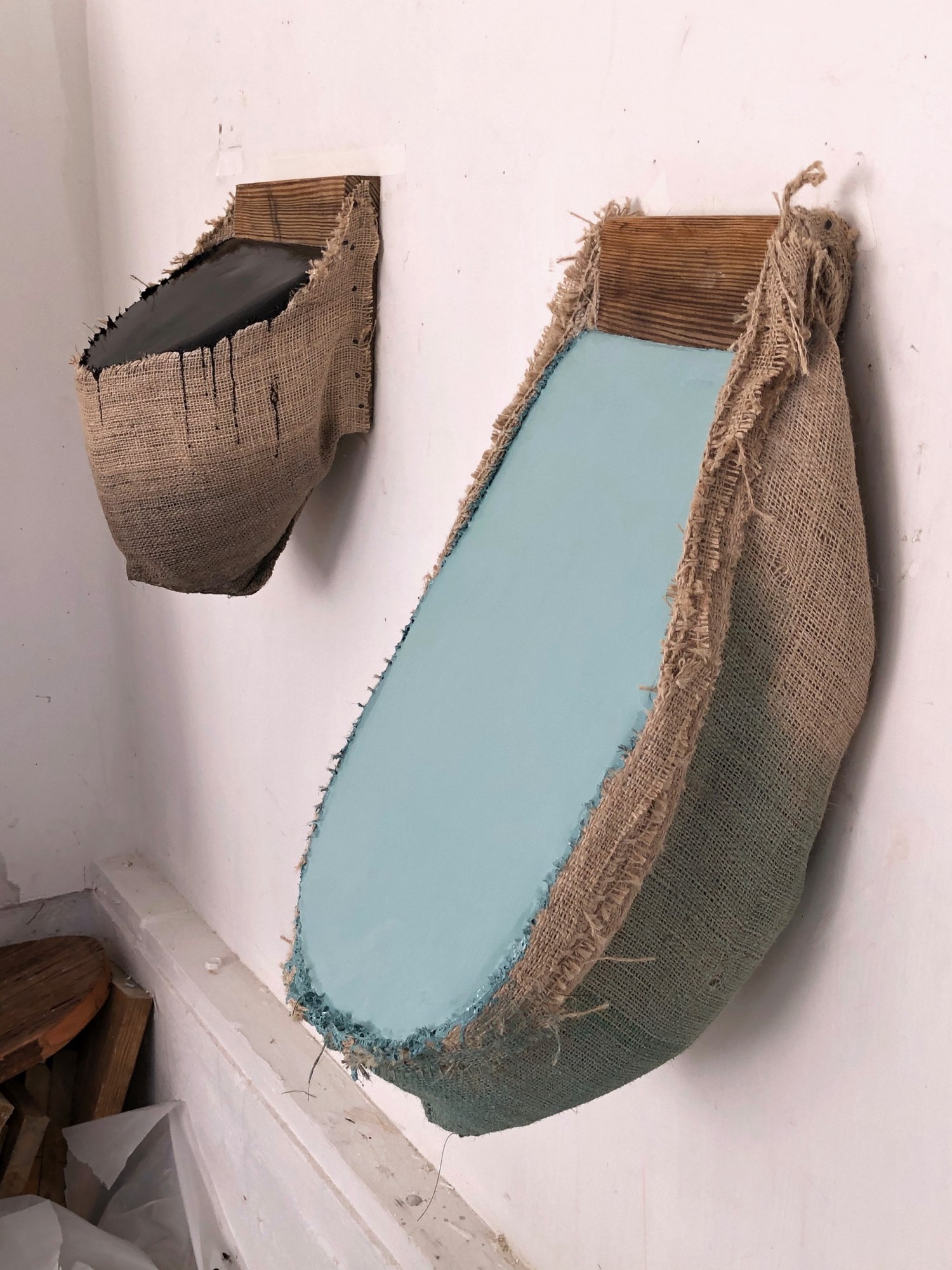 Burlap, Paint, Wood, Hydrocal, Foam, Staples, Tacks