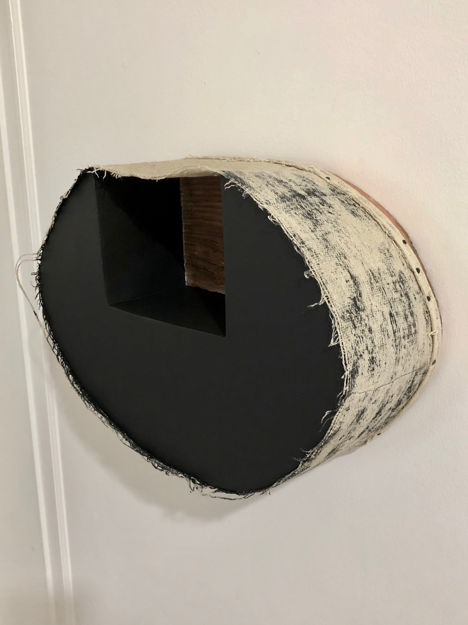 canvas, paint, wood, staples, tacks, foam, hydrocal, glue