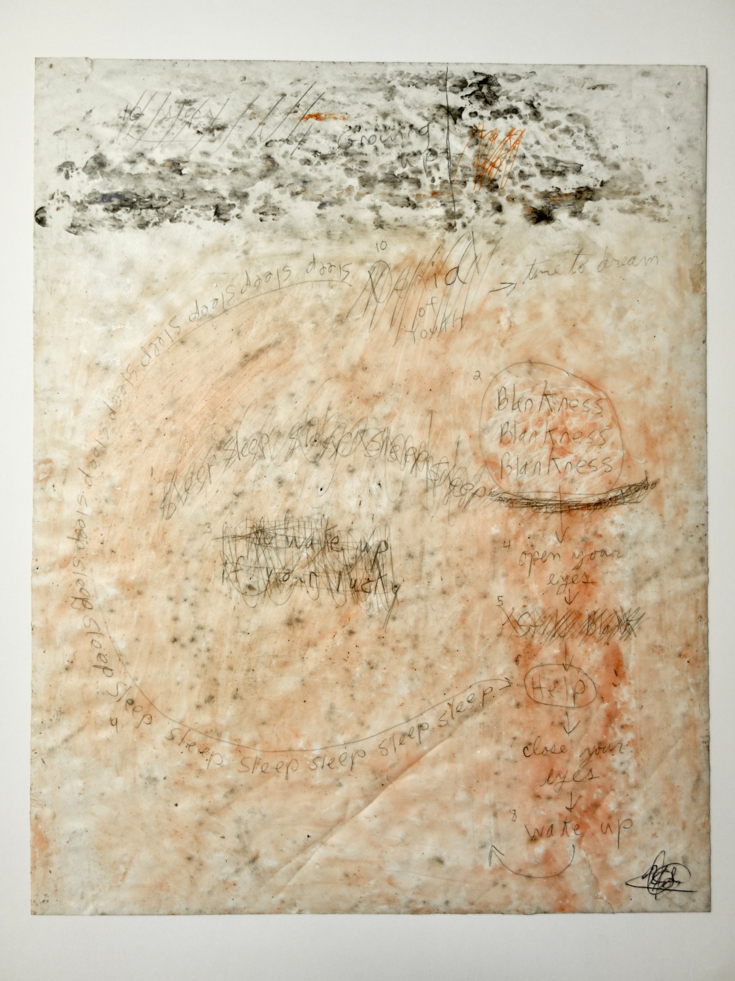 pen, dirt and wax on paper