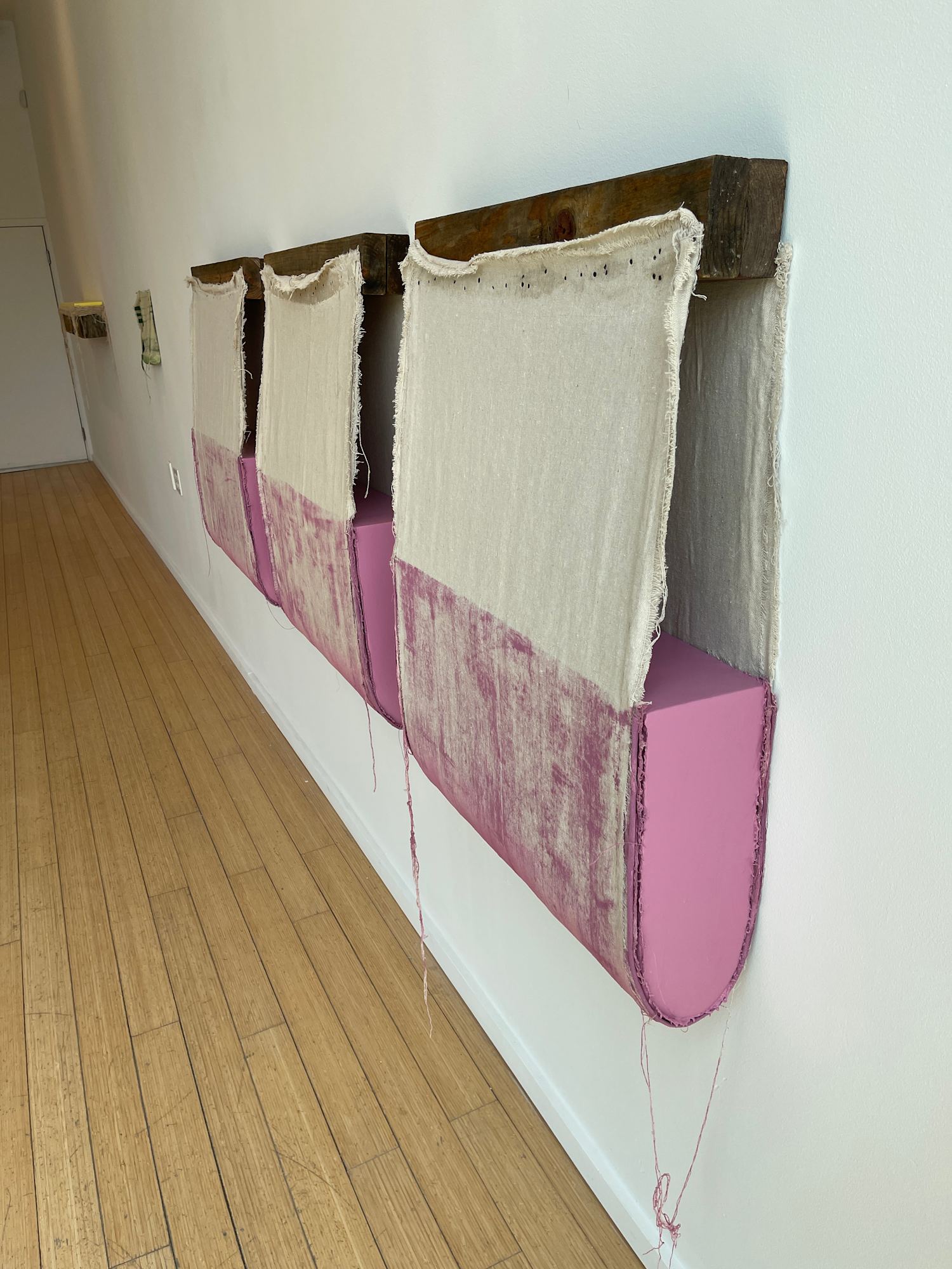 canvas, paint, wood, hydrocal, foam, tacks, glue
