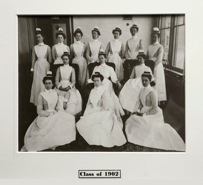This photograph is of the graduates of the 1902 Christ Hospital Nursing School program. The program is now part of HCCC.
