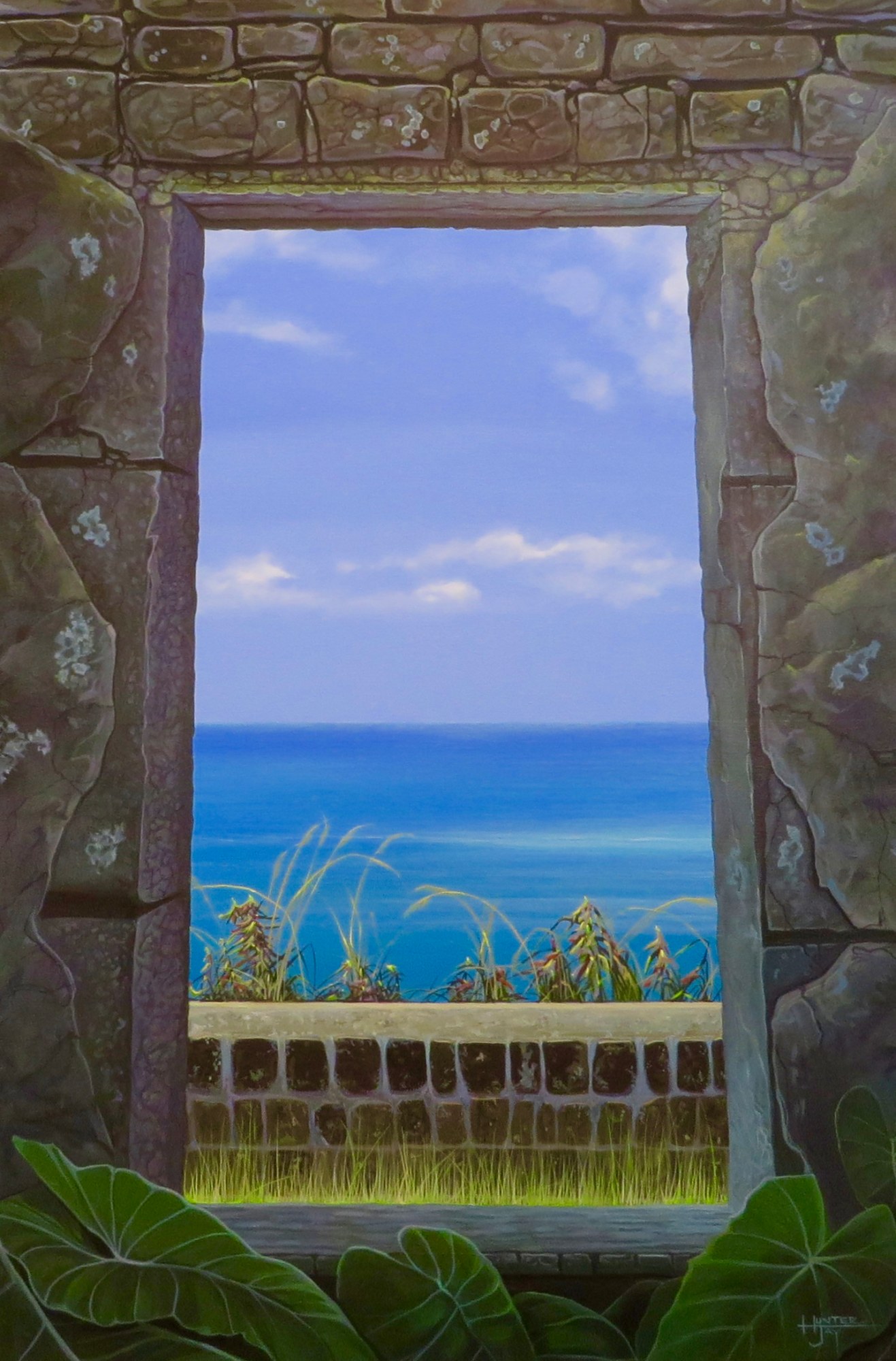 This is a view through an old doorway of Brimstone Fort on Saint Kitts. The views are amazing from this point. I was so attracted to the craggy ruins in contrast with the timeless ocean in the distance, I knew I had to paint it someday, and I finally got around to it three years later.
