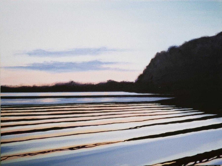 A lake at twilight in northern Minnesota. I didn't actually take the photo I based this painting upon; my friend Tom took it on vacation.