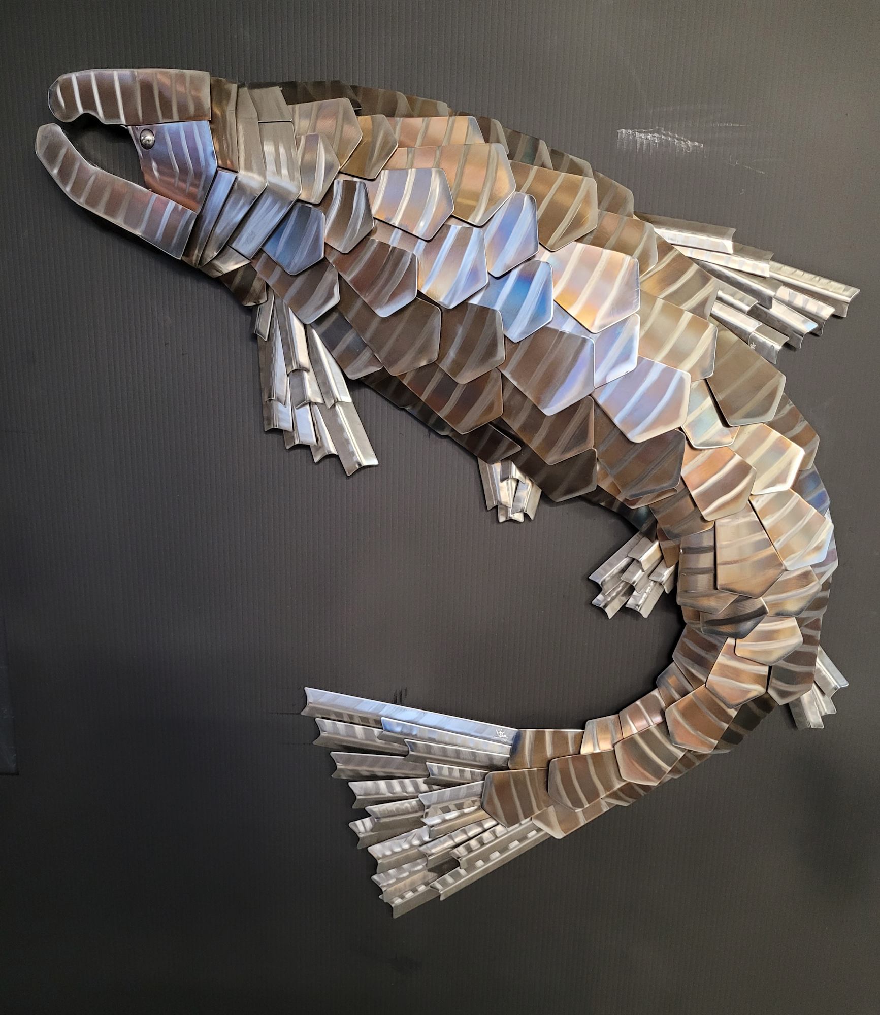 100% Handcrafted 304 Stainless Steel wall mounted Chinook Salmon.