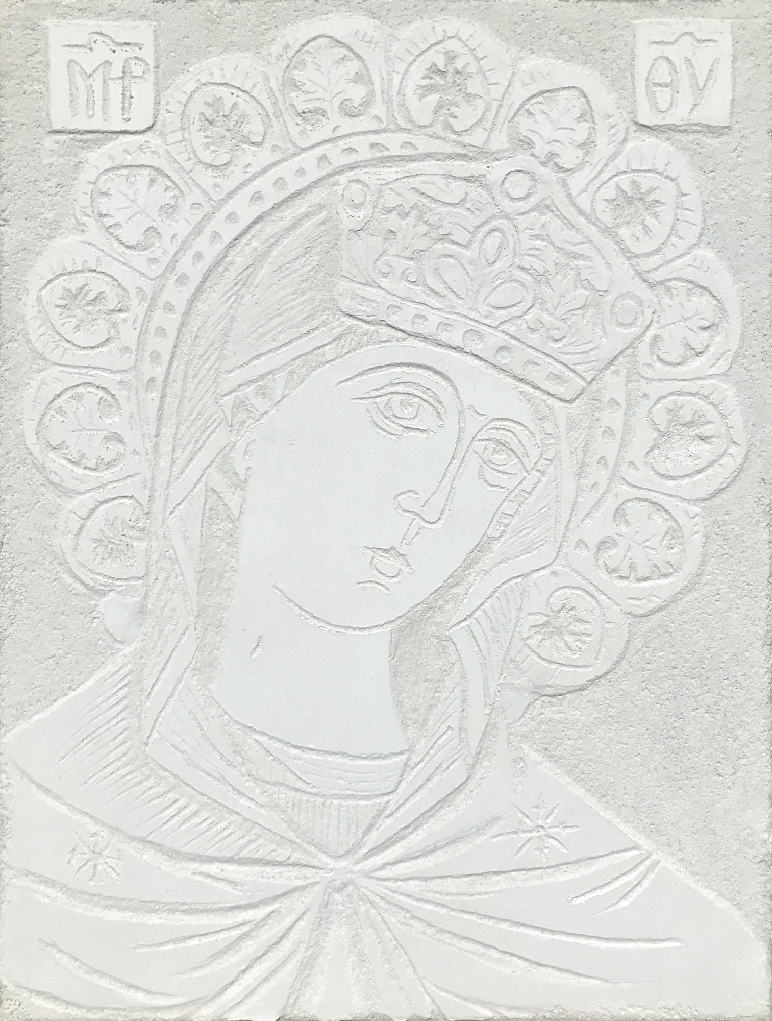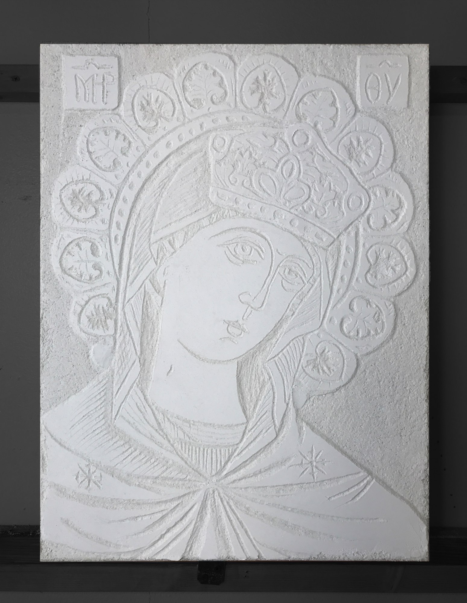 Mother of God after Andronicus Theotokos SW 1 - Original Icon, created in Sgraffito Fresco by iLia Anossov (Fresco).