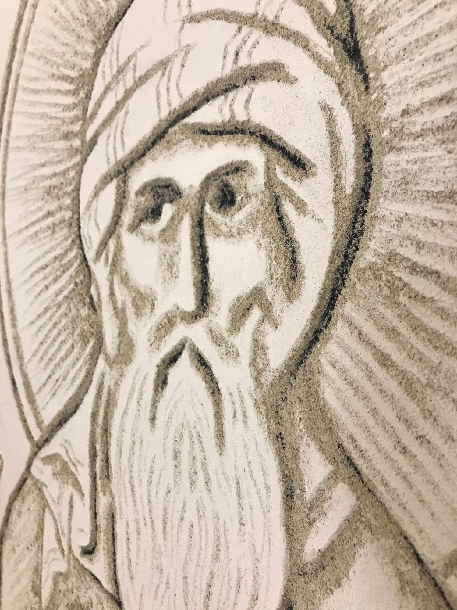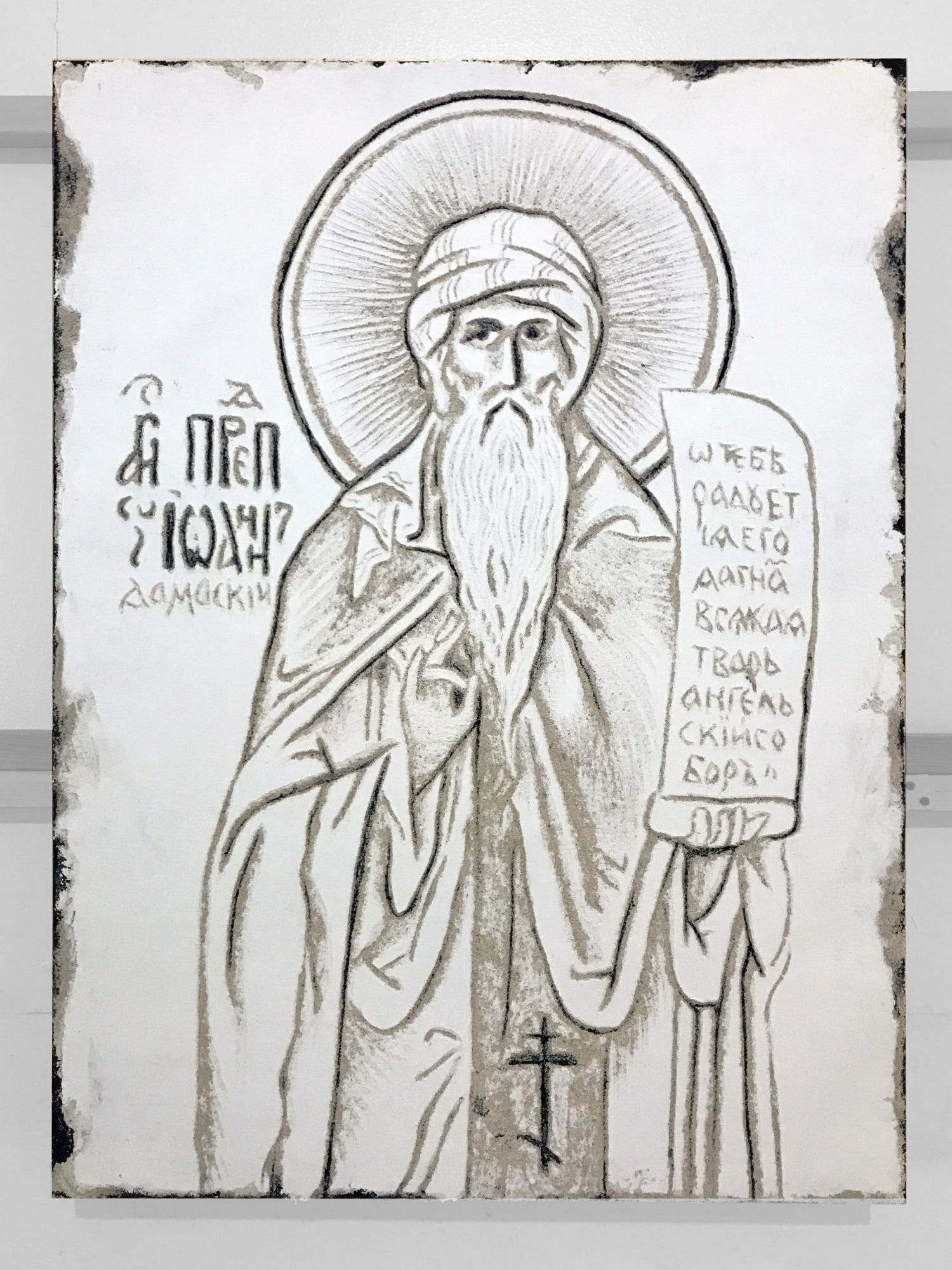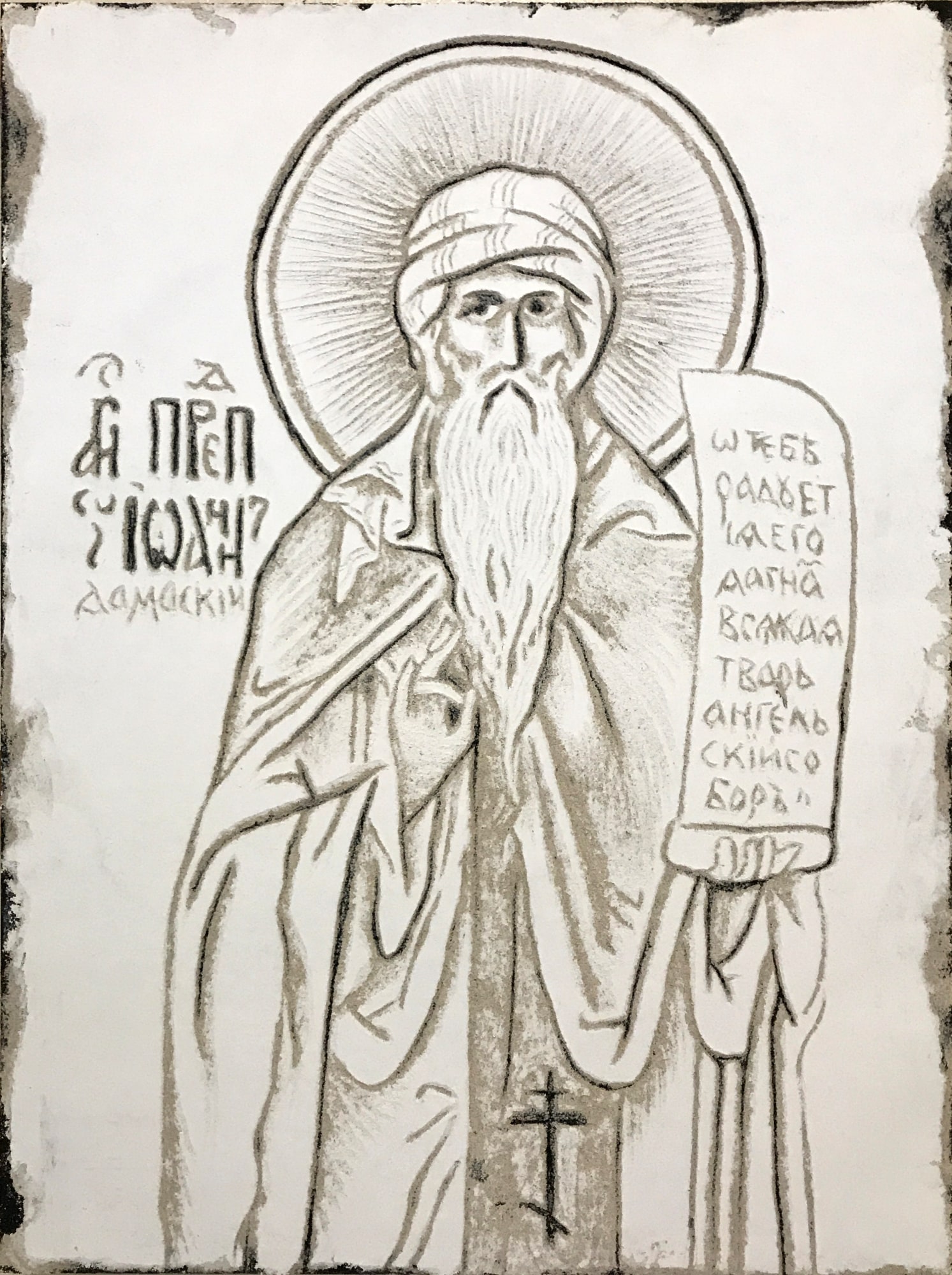Saint John of Damascus or John Damascene, - Sgraffito Icon- Original Icon, created in Sgraffito Fresco by iLia Anossov (Fresco).