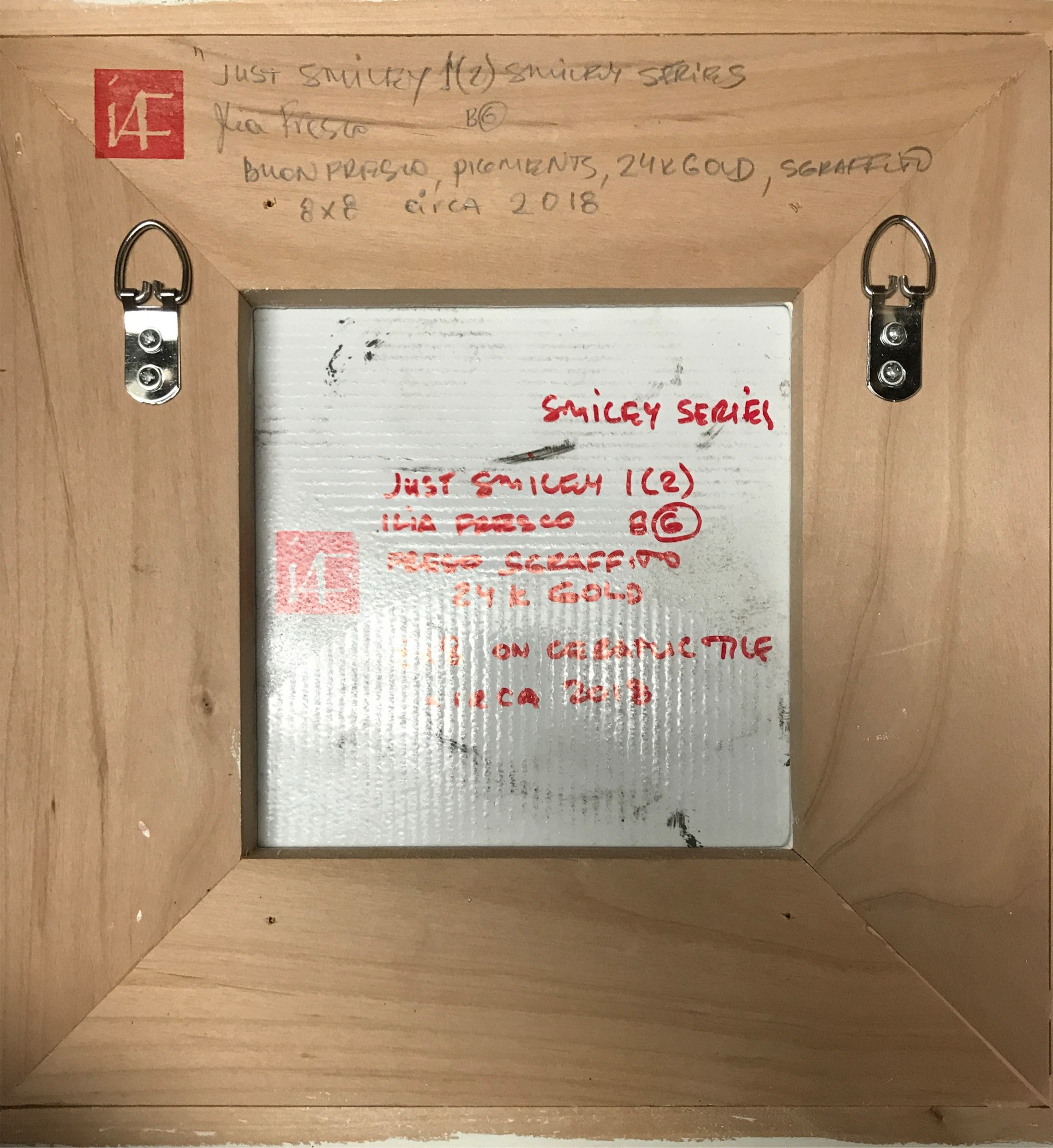 Smiley Face 1S - sgraffito fresco with 24k gold on ceramic tile. Fresco Smiley Series.