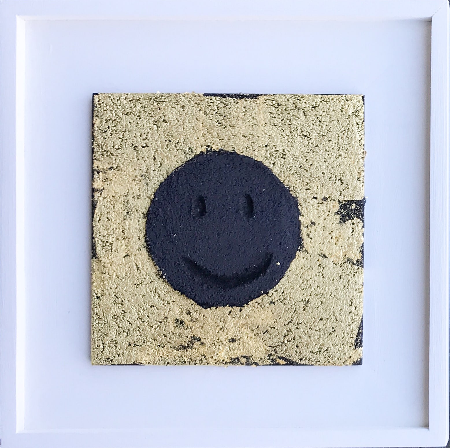 Smiley Face 2N - sgraffito fresco with 24k gold on ceramic tile. Fresco Smiley Series.