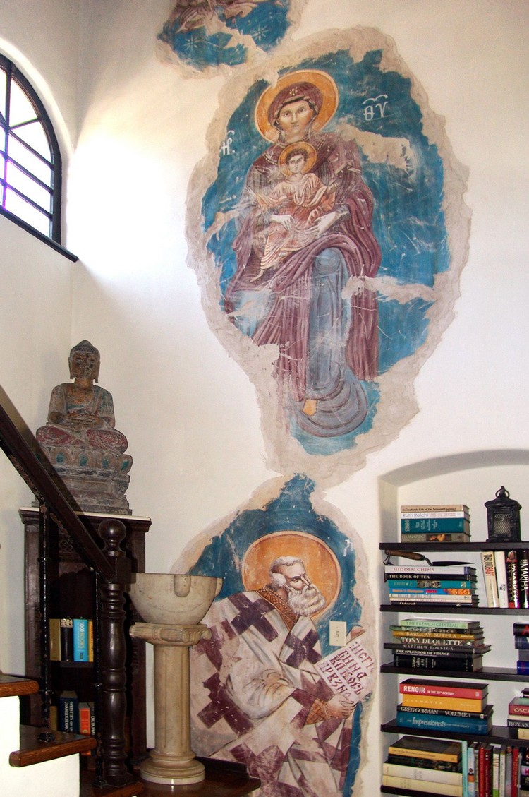 One of 2 Studies of St. Athanasius of Prizren in buon fresco on a panel and an original St. Athanasius of Prizren fresco cartoon. Both studies are painted in the studio prior to creating a fresco installation in the private residence.