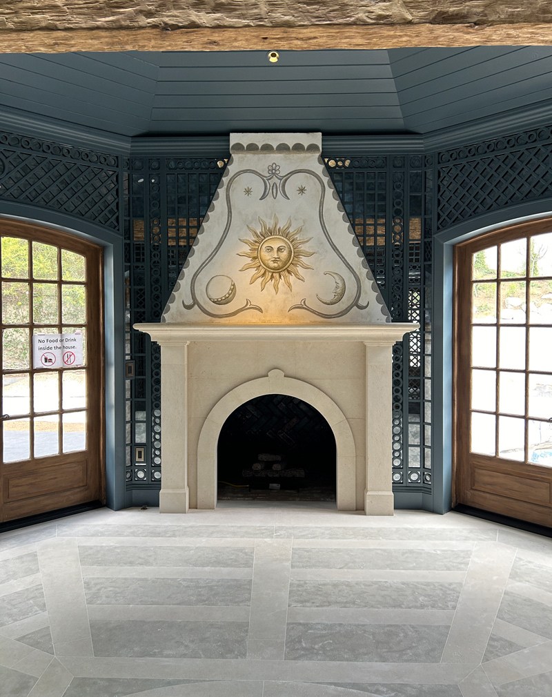 “Celestial Fresco Sgraffito” Fireplace Mantel is Featured in Architectural Digest July 14 2025 (view the feature)