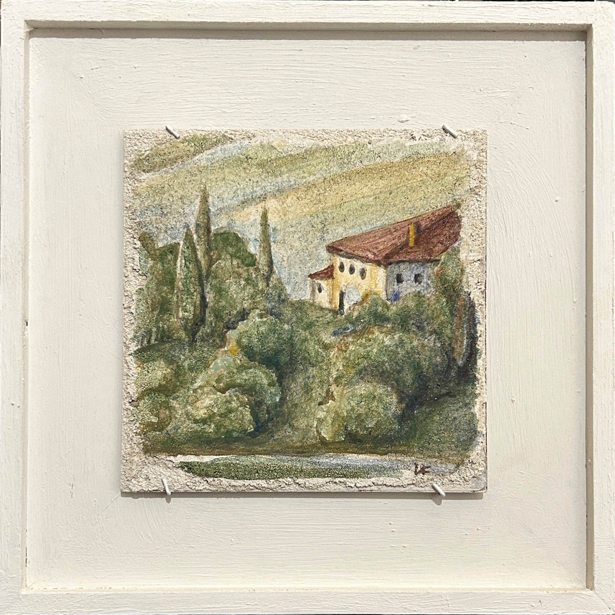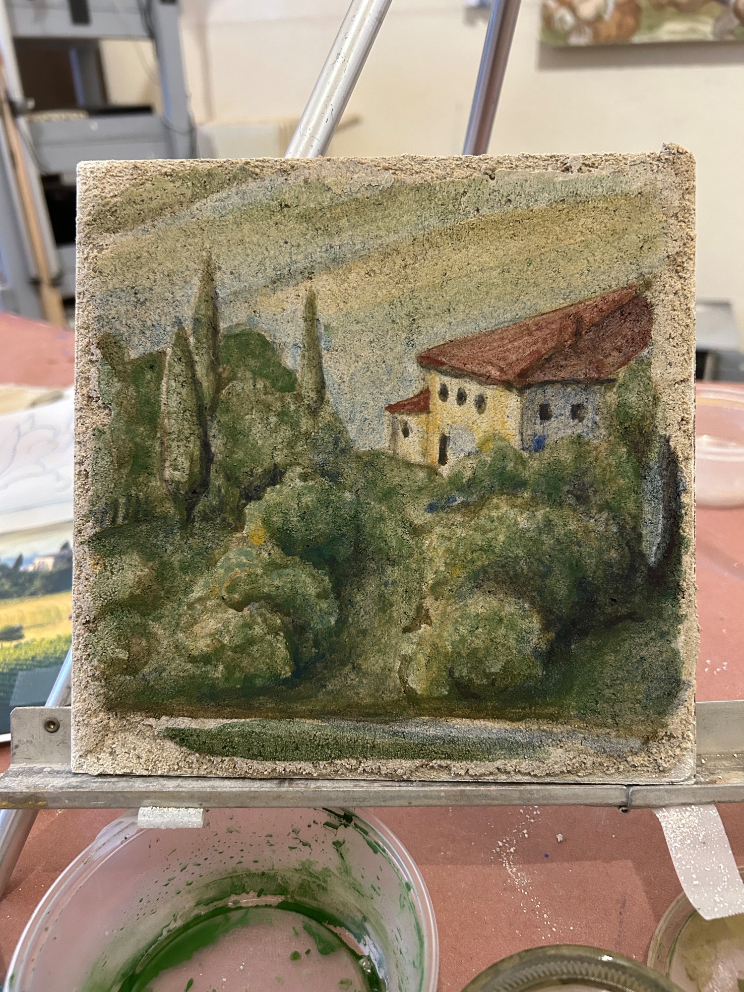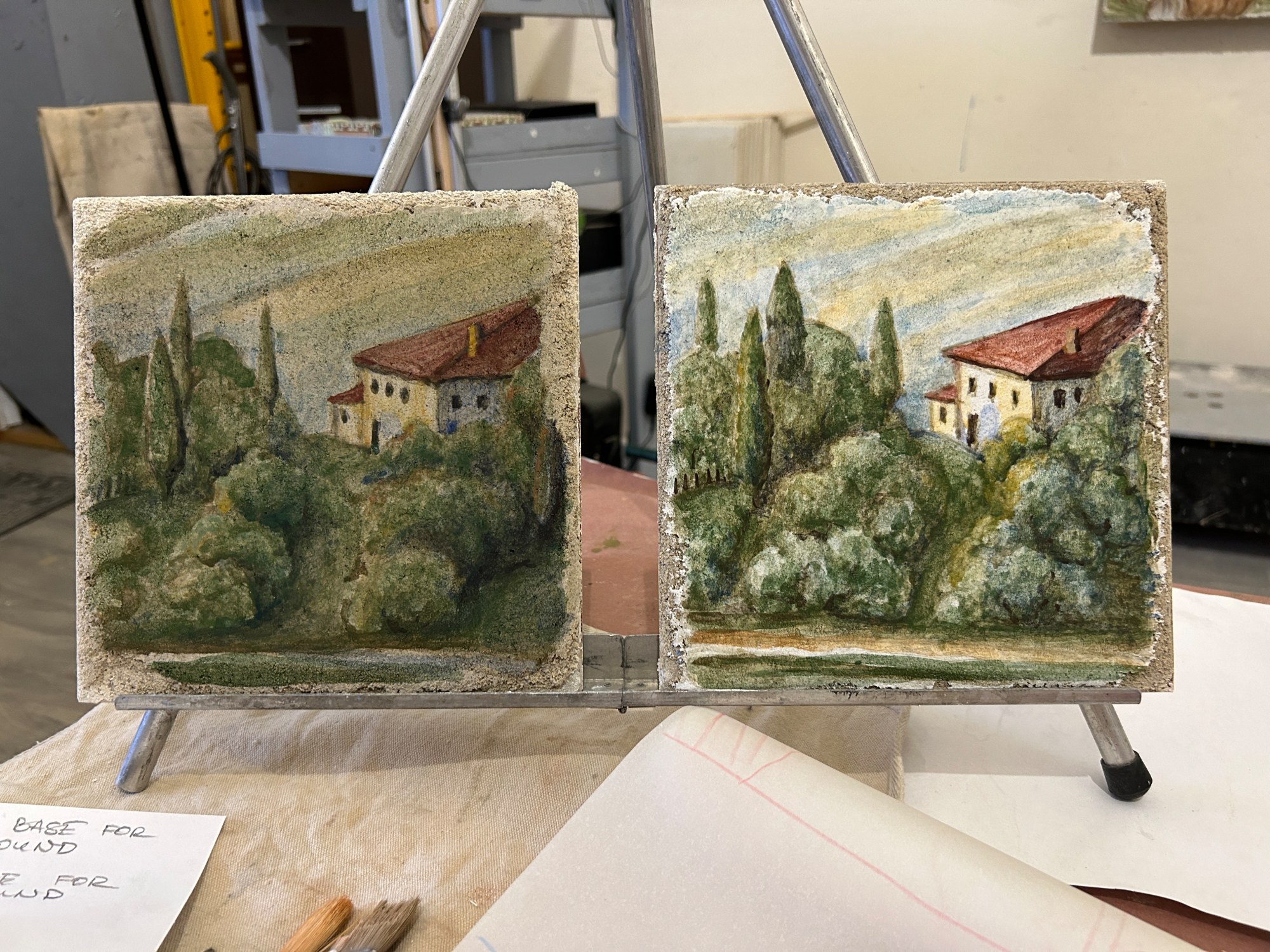 Tuscan Hillside – study on sand intonaco for Canaan Builders Fresco – Fresco Fragment – 8X8 on ceramic tile, Renaissance Collection.