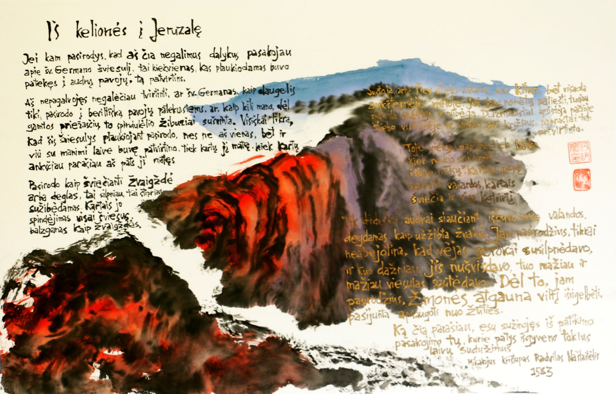 The exerpt in Lithuanian language from a book "A Jerusalem Trip" on the subject of St. Elmo's fire. The book was originally written in Latin, 1582, by Lithuanian-Polish Nobleman Prince Mikolaj Krzysztof Radziwill. During his voyage he visited Palestine, Syria, Egypt, Crete, Cyprus, Italy, and Greece. Radzwill calls apparition of St. Elmo's fire as Sancti Germani sidus.