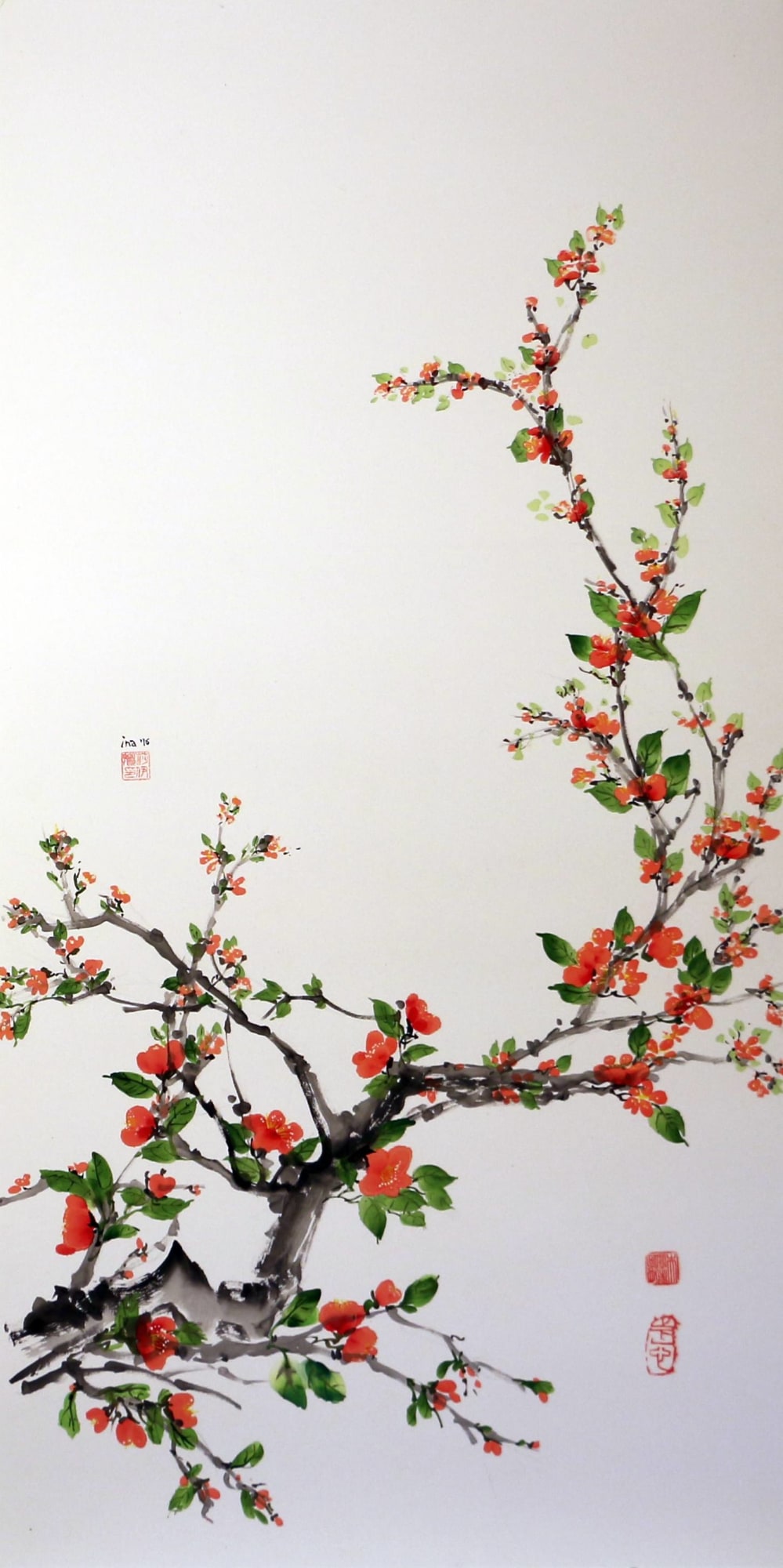 Tušas, mineraliniai dažai, ryžių popierius