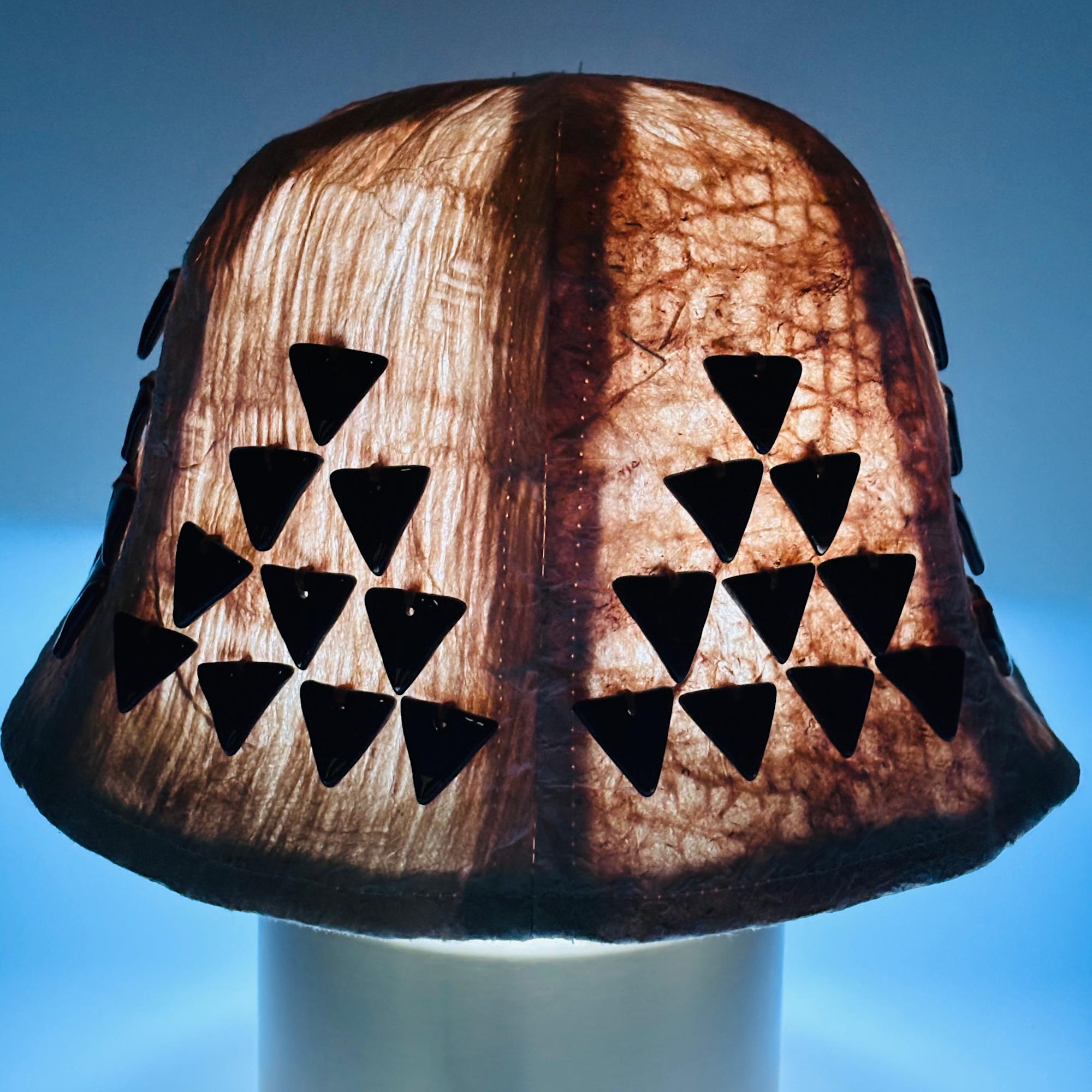 When illuminated, watermarking embedded within the kapa is revealed. These marks were added during the final stages of the kapa making process. The left side features a linear pattern, while the right side features the Upena (throwing net) motif.
