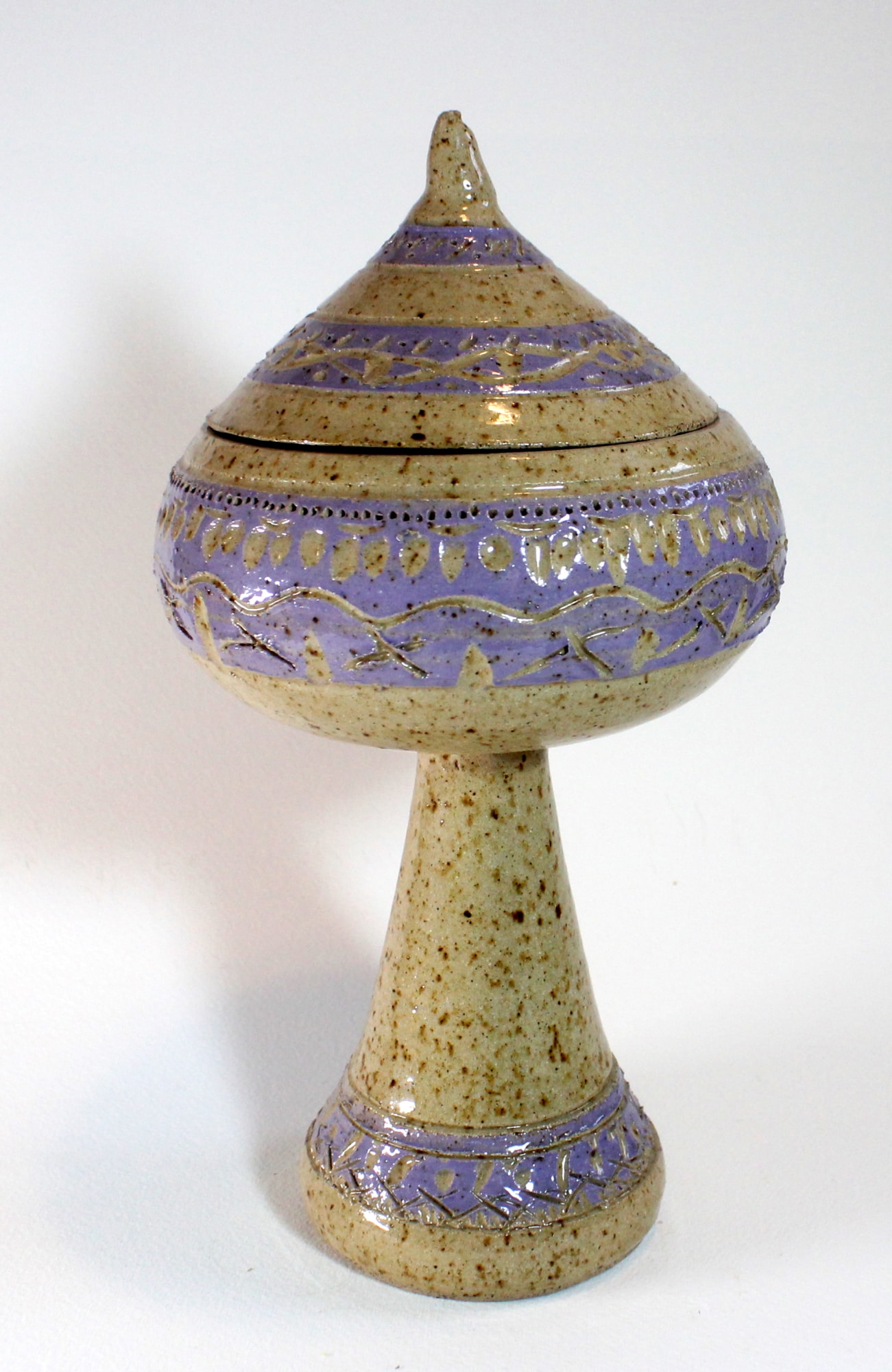 Pedestal Jar with Lid and Purple Trim