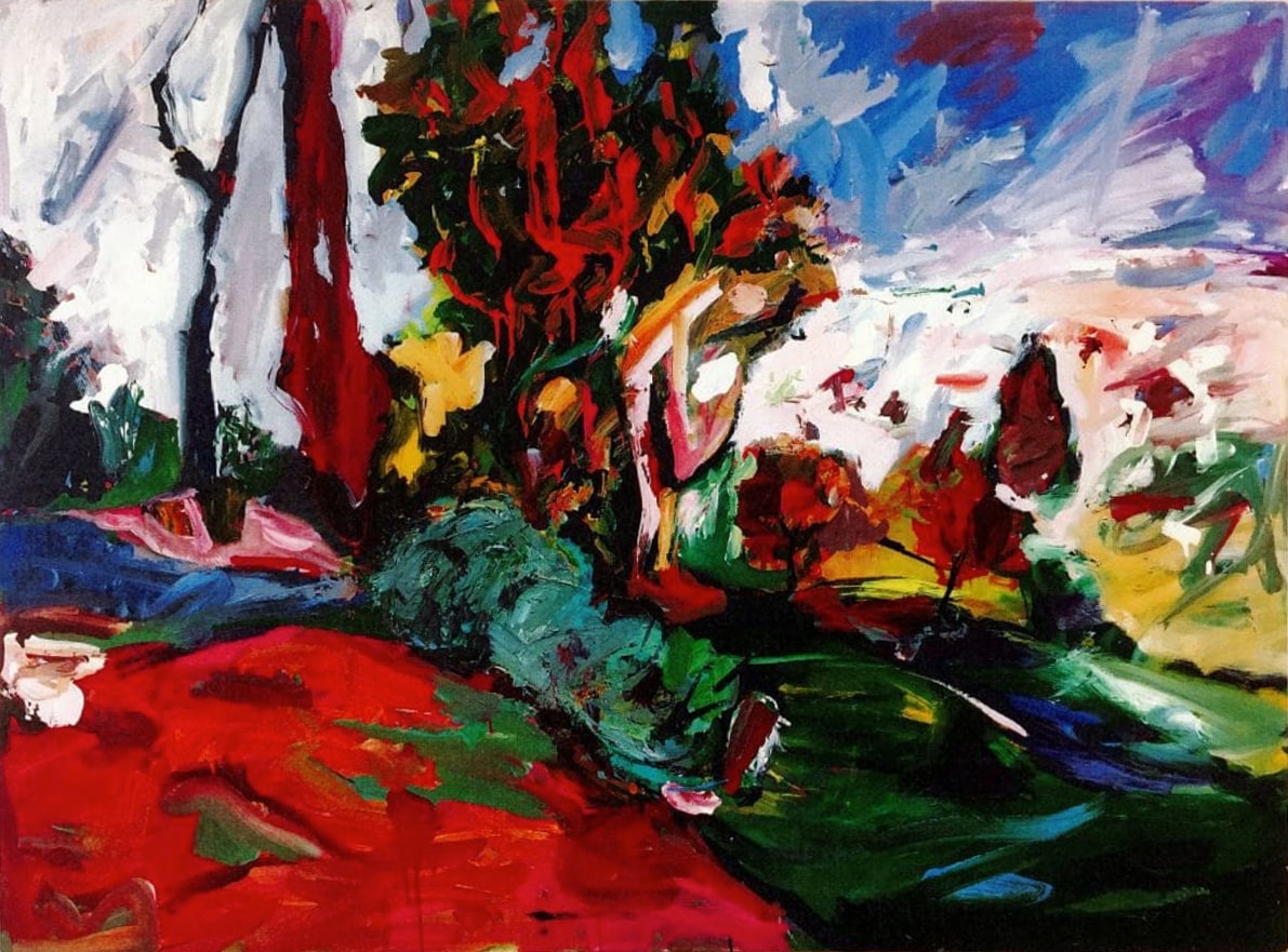 A lawyer by profession who specialized in mental health law, Lou Kaplan studied art at the Corcoran School of Art and in Florence, Italy. Behind his abstract landscape lies a likely admiration of German Expressionism, such as landscapes by Ernst Ludwig Kirchner. Donated by the widow of the artist, Sally Kaplan.