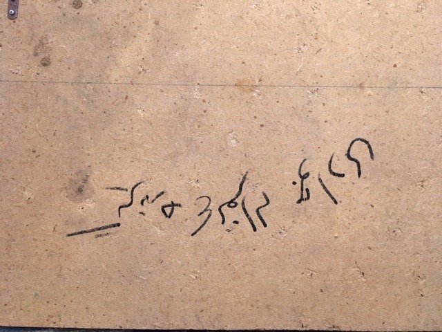 Inscribed on the back in Persian (Farsi) by the person who commissioned it, or by a previous owner ("receiver Nasrullah Javadi"), this unusual panel probably was inserted into a door or cupboard. Donated by IRC resident Cooby Greenway. For further information, see Richard Spear, "Art in the Dining Room," revised September 2022, by clicking on the fourth image.