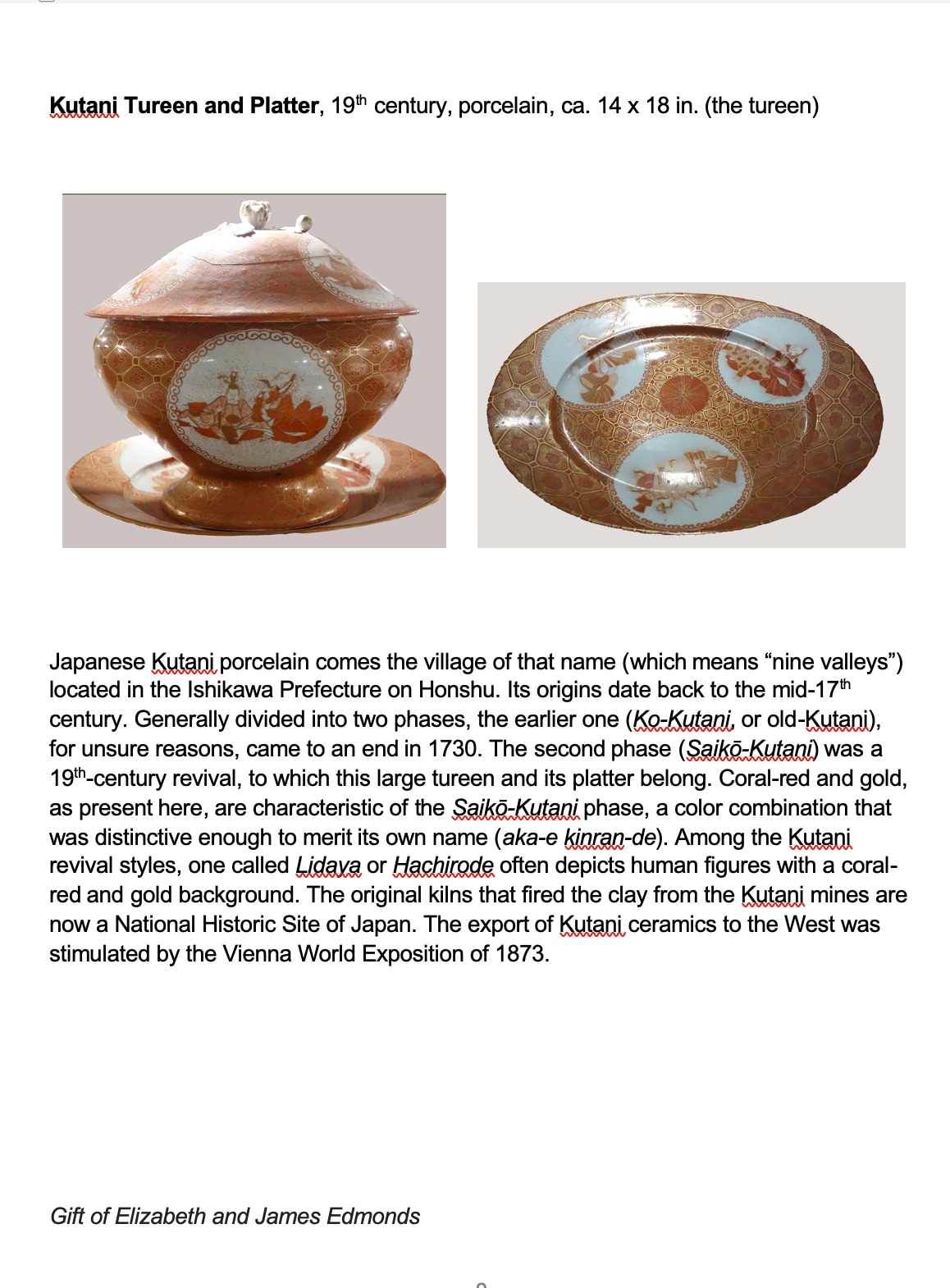 - Kutani Tureen and Platter