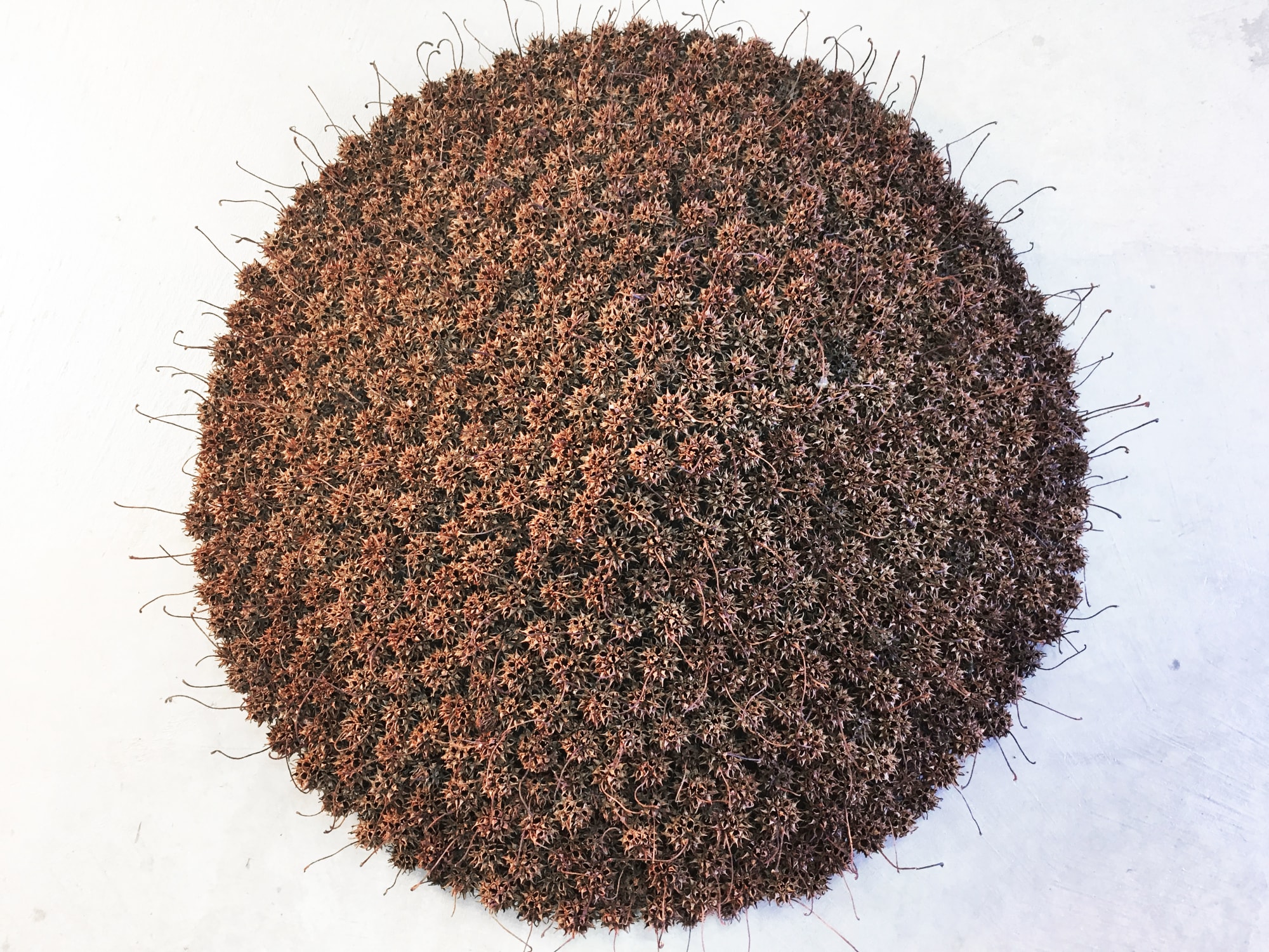 - Sweet gum seed pods, expanded aluminum, hot glue